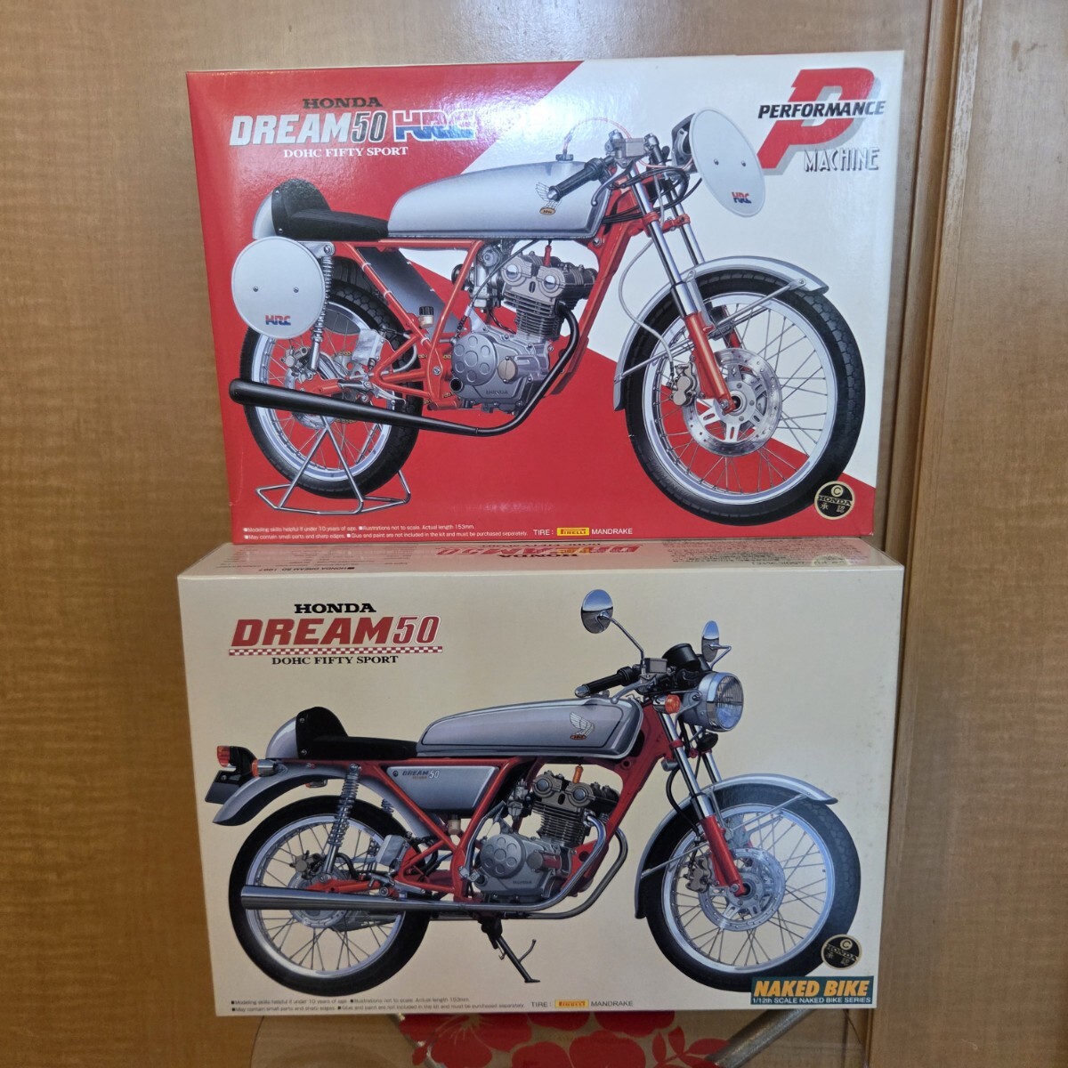 AOSHIMAアオシマ プラモデル 1/12「HONDA DREAM 50」と「 HONDA DREAM 50 HRC」 2台セット 新品未組立未開封 保管品 の出品です。