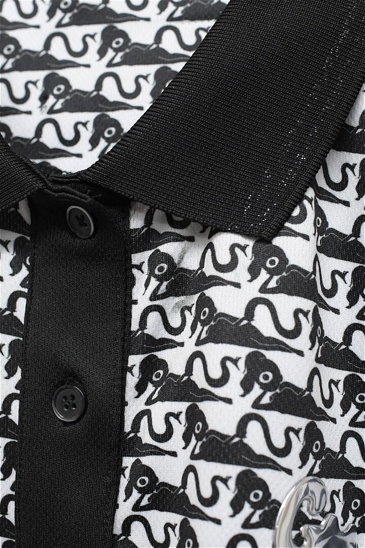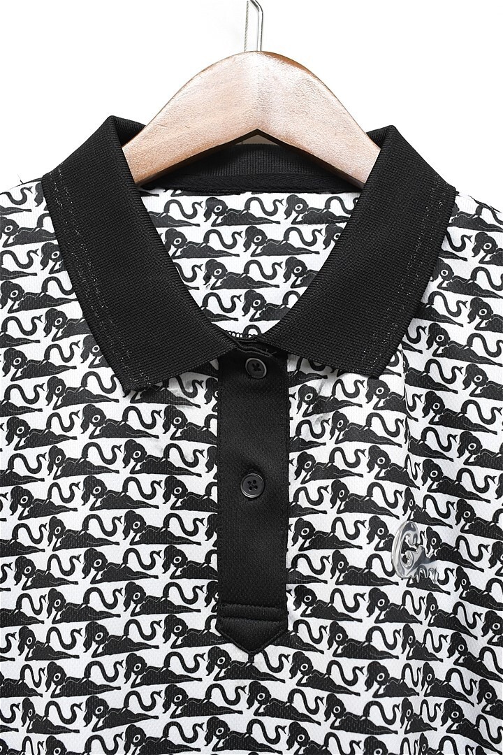 P362/未使用 GREED MONSTER グリードモンスター 半袖ポロシャツ 総柄 ストレッチ M 白黒 ゴルフ レディース アテナ