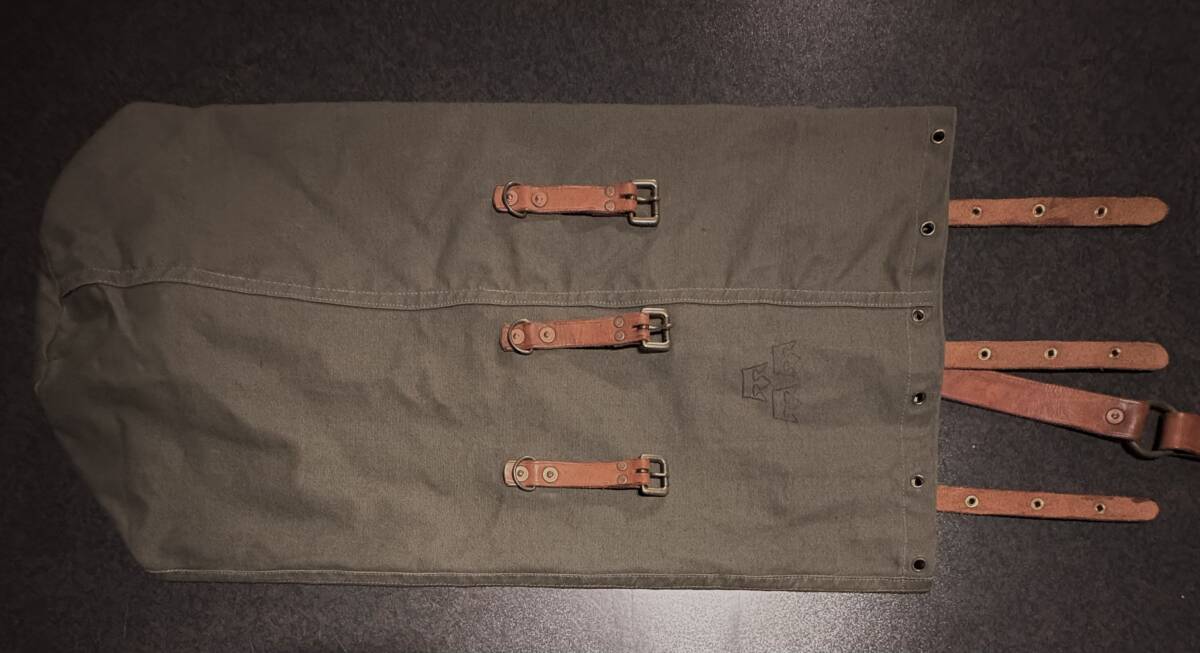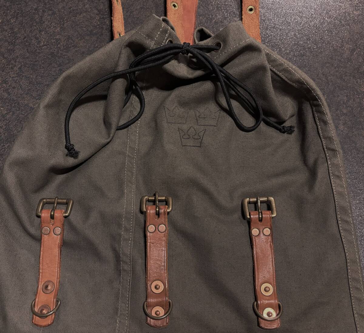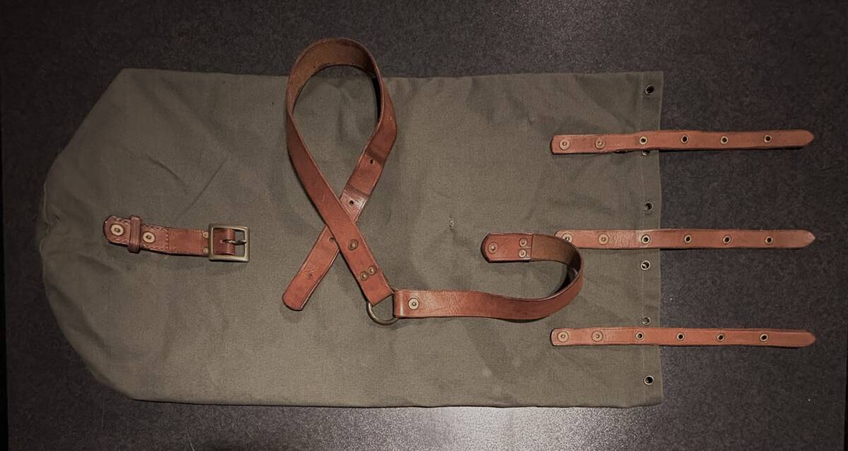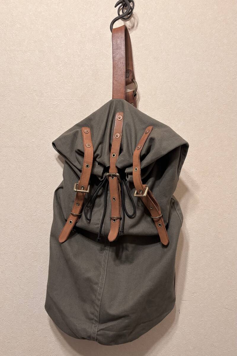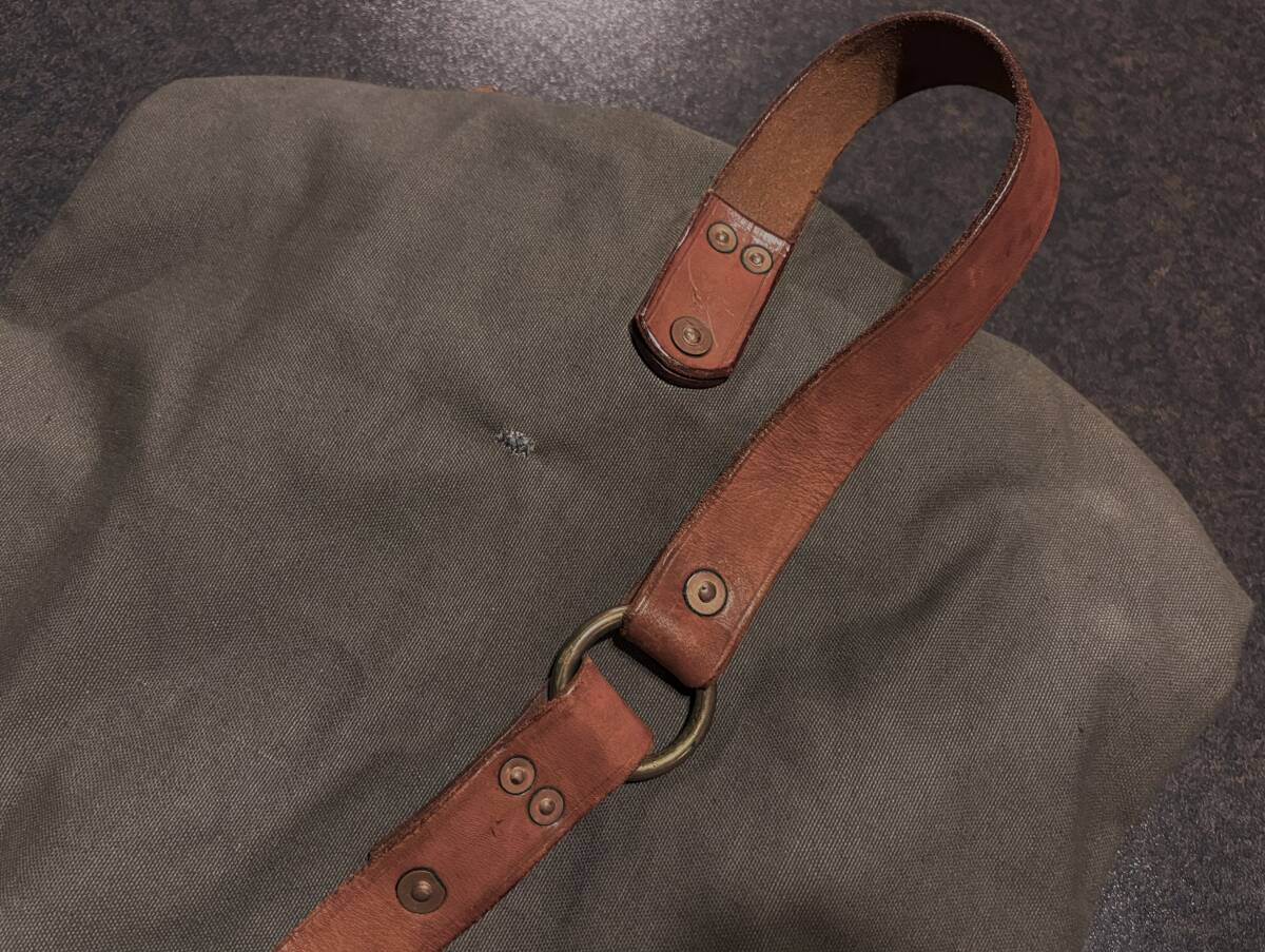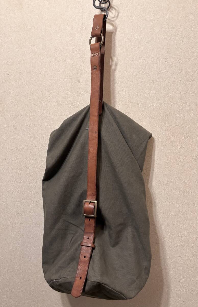 希50sビンテージ実物スウェーデン軍ワン1ショルダー改バッグ真鍮バックル鳩目ベルト皮ストラップ本レザー革ミリタリー マウンテン リュック