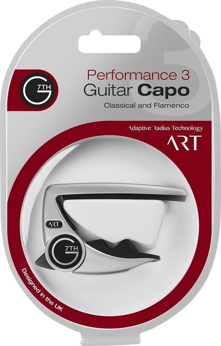 | G7th Performance 3 ART Capoにクラシック用が登場! G7th Performanceクラシック用カポに、ART機能が搭載された待望のモデルが登場しました。 近年見られる指板に若干のRがつけられたクラシック/フラメンコギターにも対応し、チューニングの精度が向上します。 指板・フレット・1~6弦が成すカーブと押弦時の負荷に対し、最適な形状へと柔軟に変化します。 最小限の圧力で弦を抑える事が可能な為、チューニングの精度が向上し、ビリつきを抑えます。 (ART:Adaptive Radius Technology/US Patent No:6635813) クラシックギター用 |