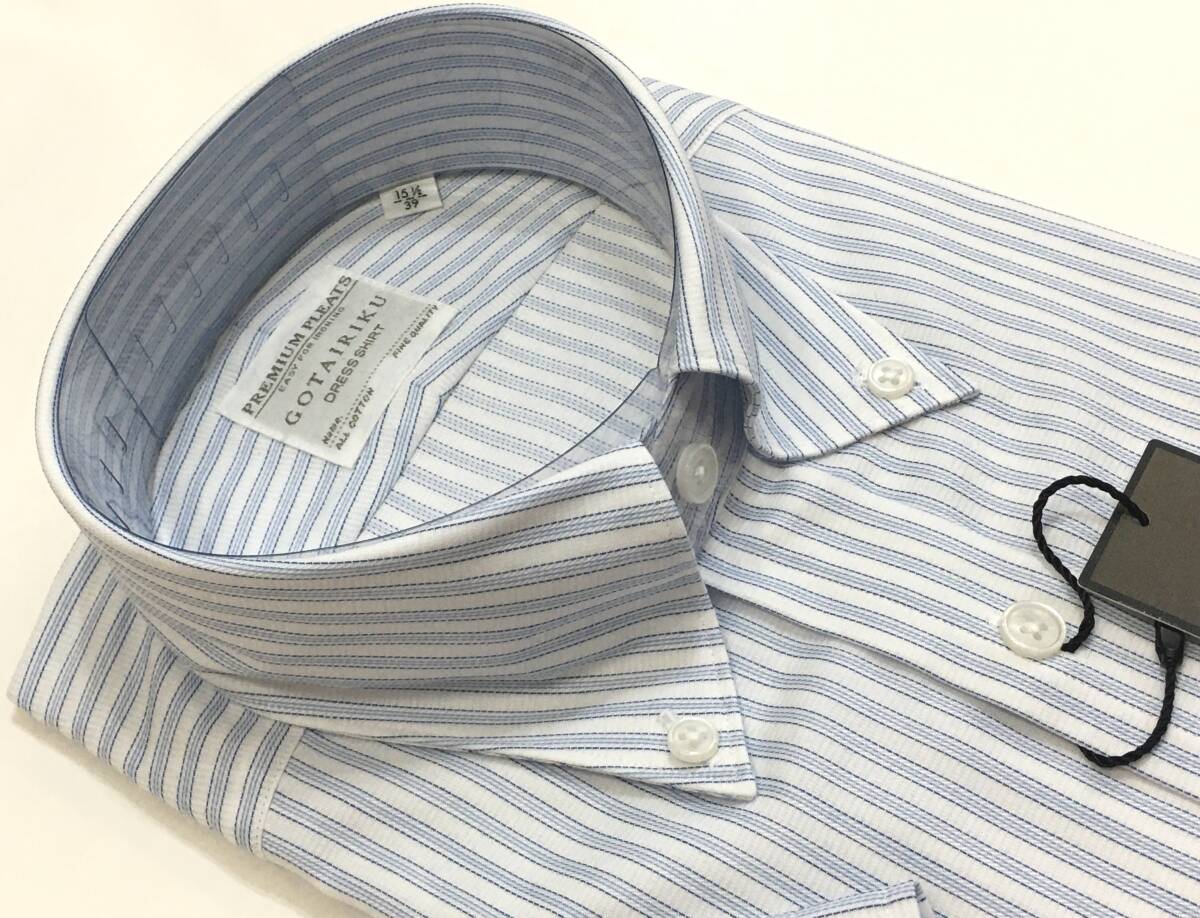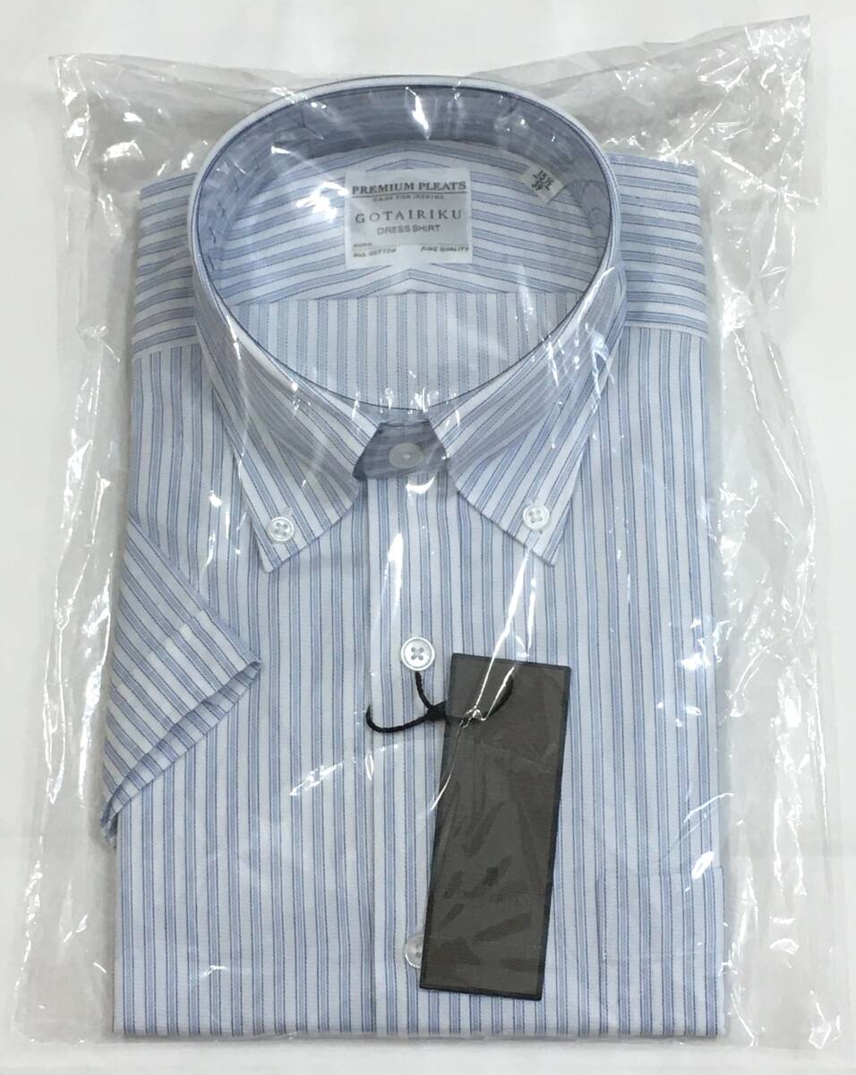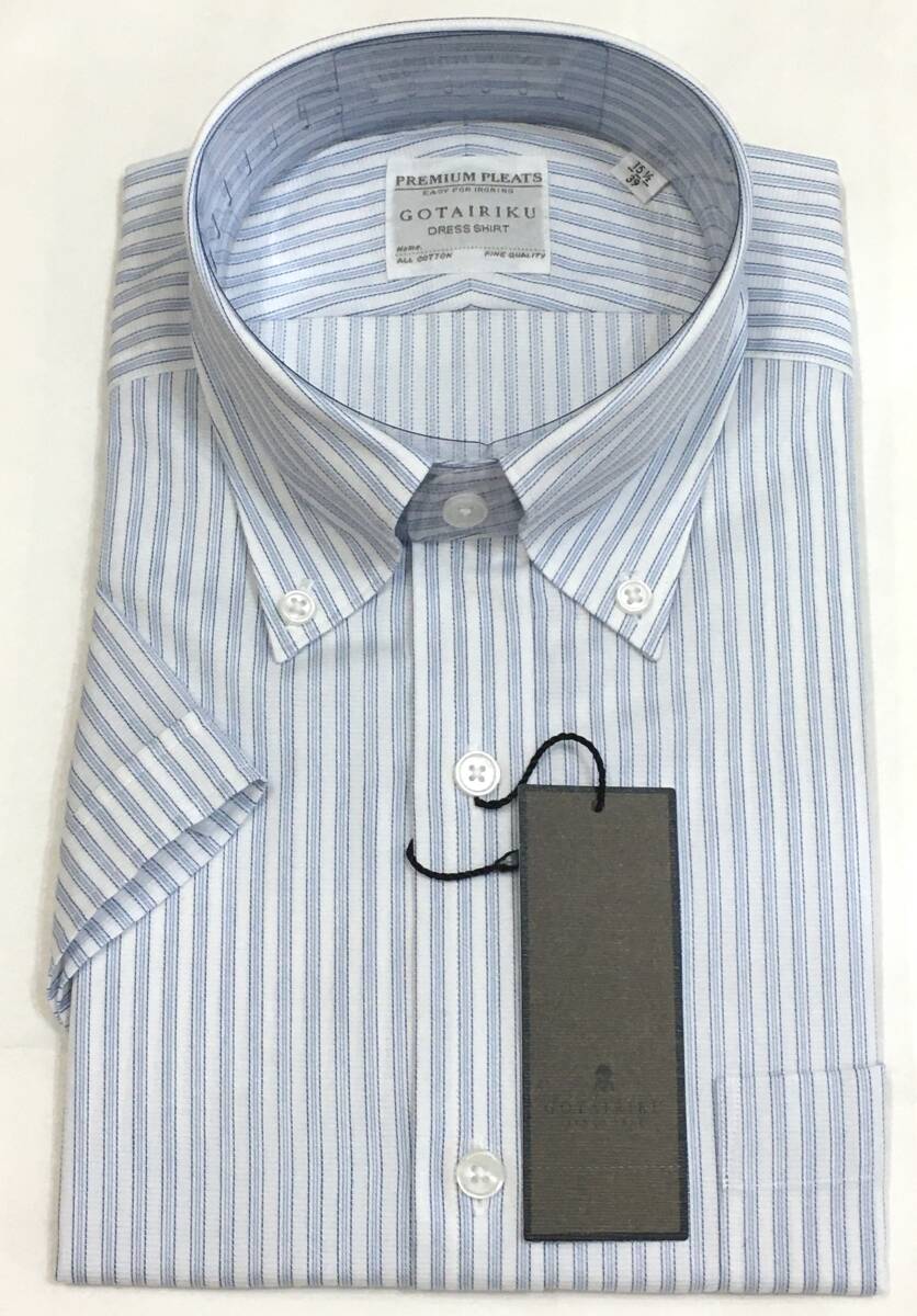 gotairiku 五大陸 PREMIUMPLEATS 半袖 ボタンダウンシャツ 綿100% 39 M ストライプ オンワード 定価14.300円