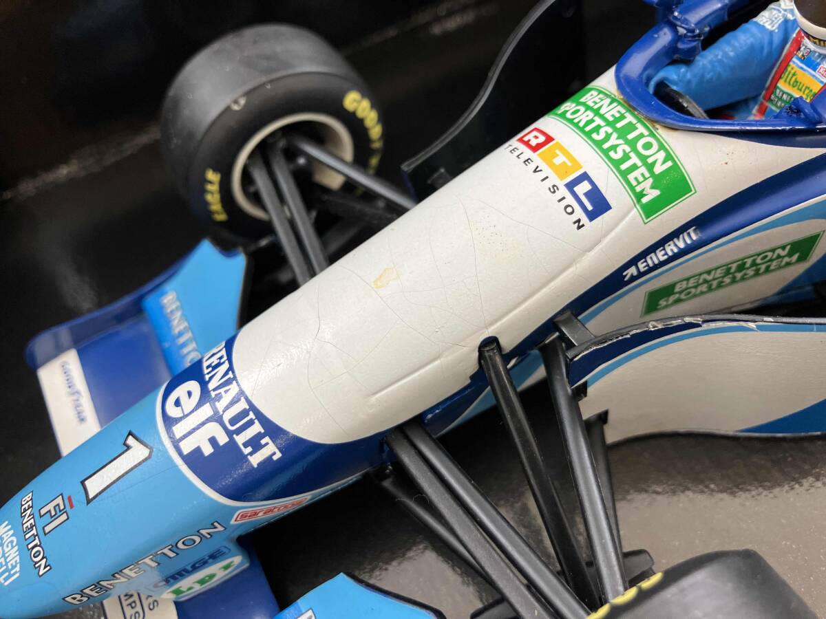 画像に写っているものがすべてです。 ポールズモデルアート ミニチャンプス1/18 BENETTON RENAULT B194/B195 GP Europe 1995 と、ミニチャンプス ミハエル・シューマッハヘルメットモデルフィギュア 1/8 のセットになります。 本体は開封済み未使用品かと思われますが、経年劣化のため本体車体部分に塗装ひび割れあり(8枚目の画像)、外箱、ブリスター傷み汚れあり。 ヘルメットフィギュアはケースに傷みあり。 上記の理由からジャンク品での出品もさせていただきます、ご了承ください。 状態などは画像をご確認ください。 |