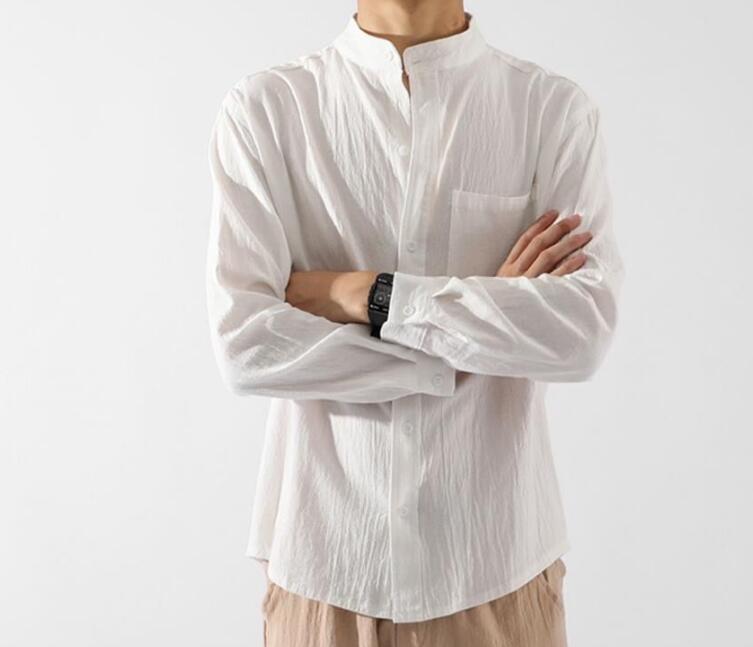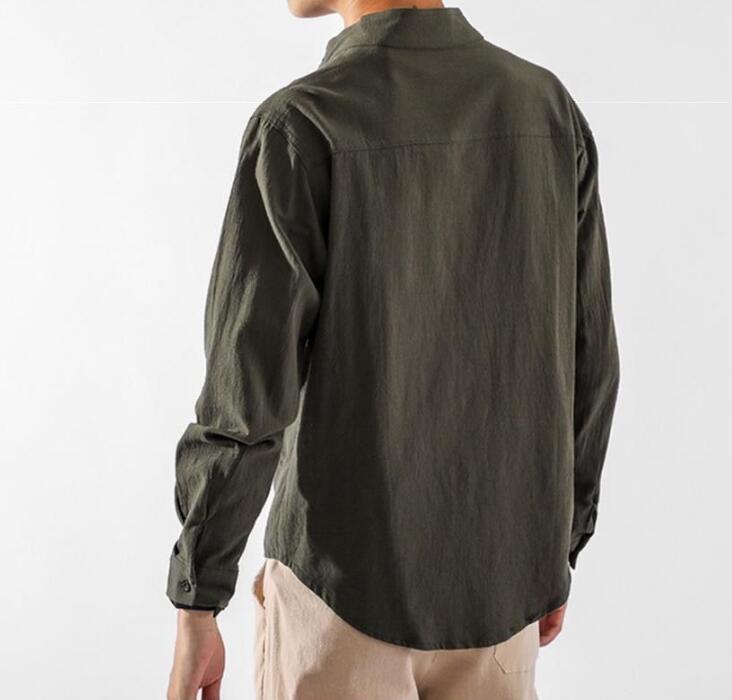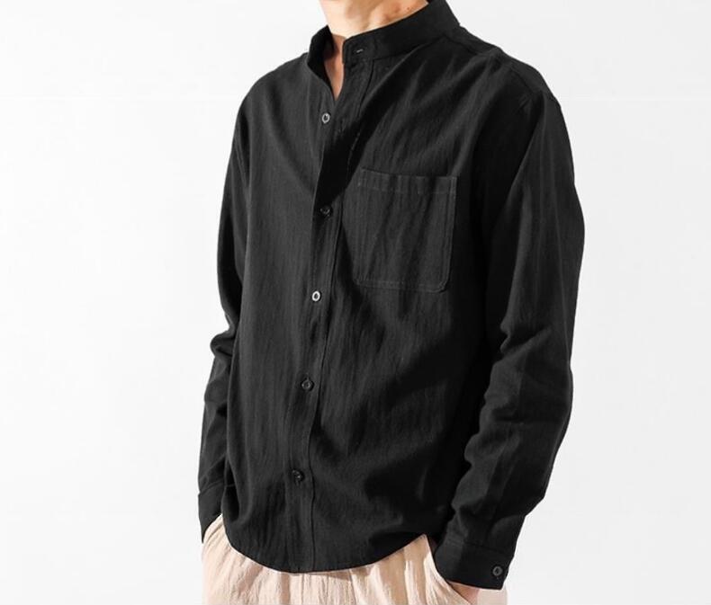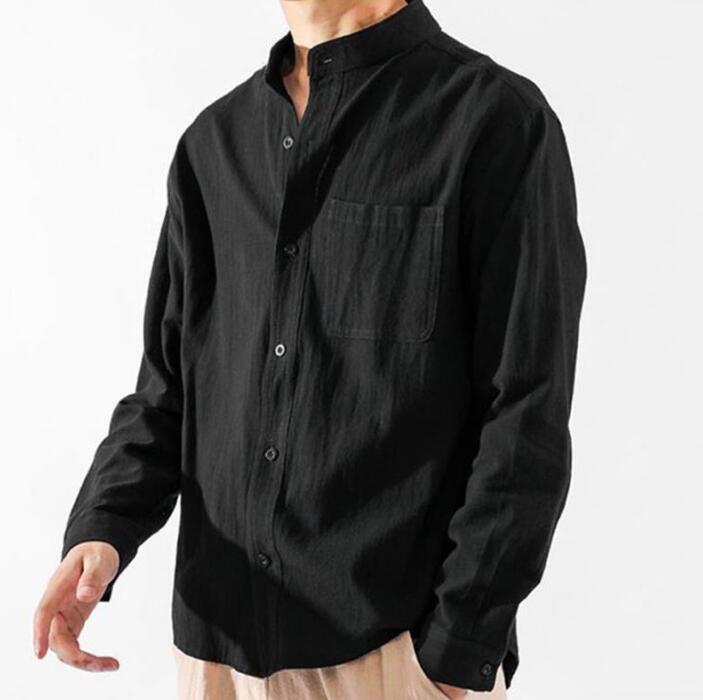 新作お色選択可リネンシャツ メンズ 麻 シャツ 長袖 綿麻シャツ シンプル カジュアルシャツ 無地 欧米風 ゆったり 前開 秋新作 黒XXXL