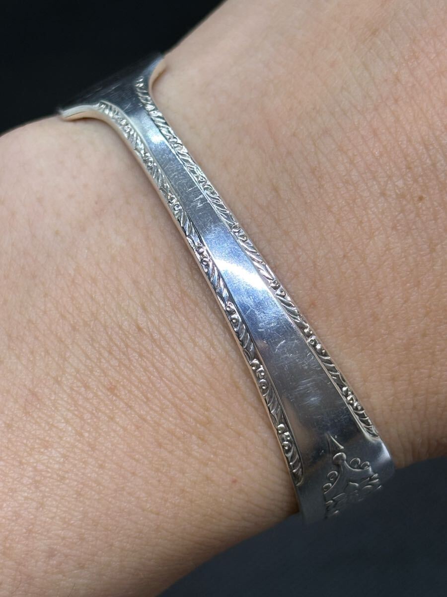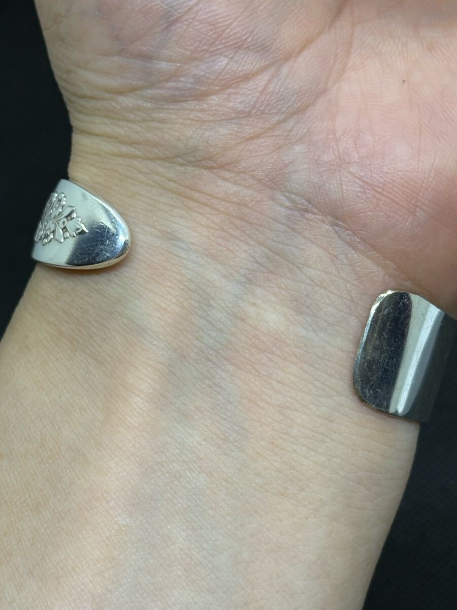 元々、50年代頃のアンティーク、バターナイフで作られたバングルで現行物には出せない独特の雰囲気、オーラがある雰囲気抜群の1品!