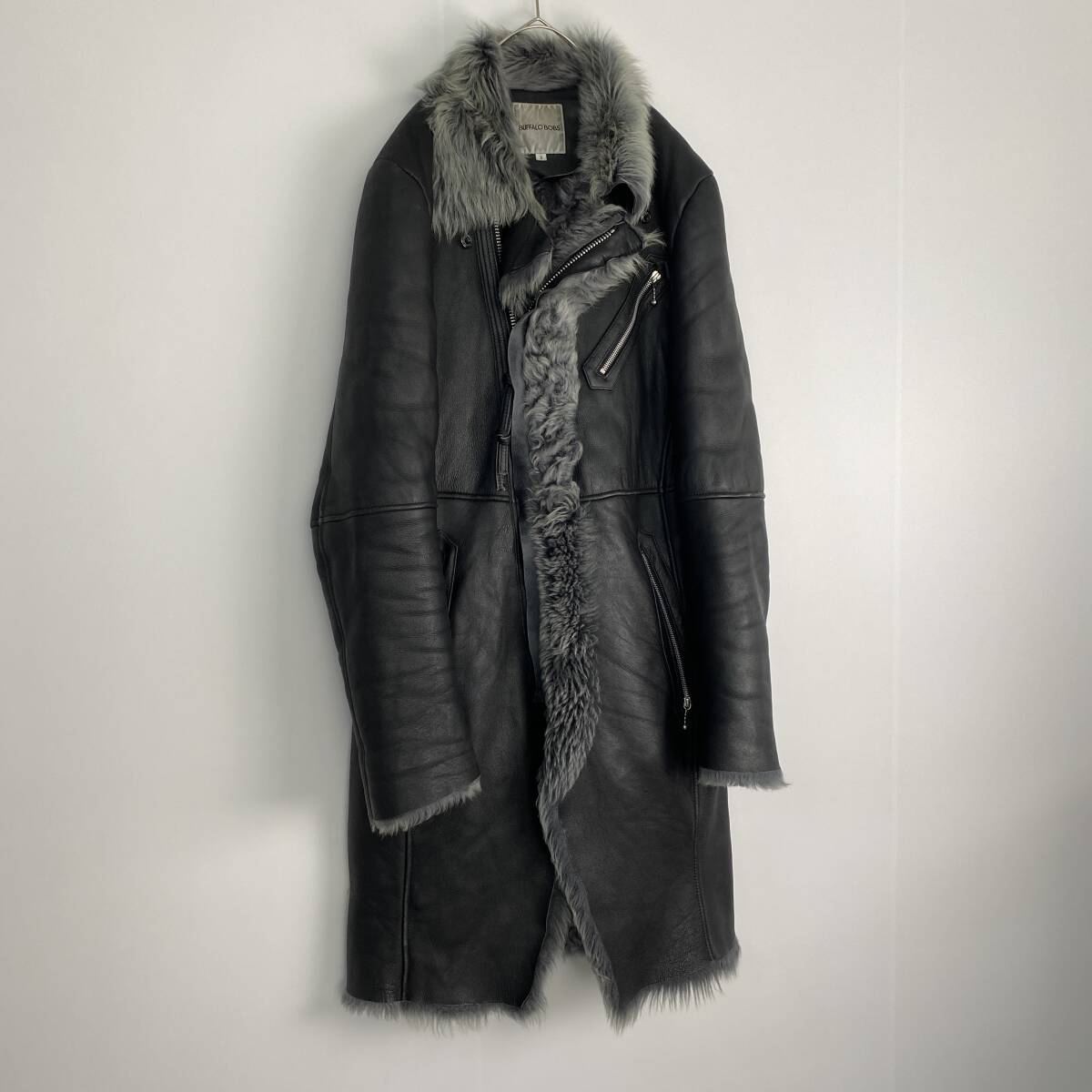 【状態】襟黄ばみ 裏地左部分の毛劣化 左ポケットやぶれ 右ポケット裏地ほつれ 革全体的に擦れあり(写真を参考に)胸ポケットフェイク