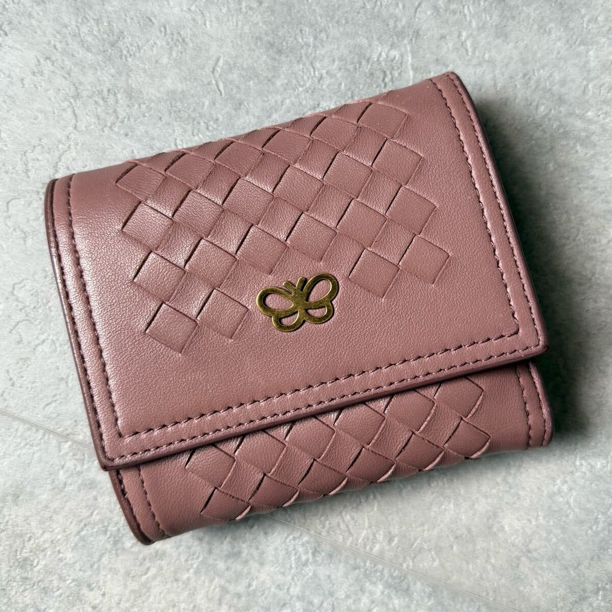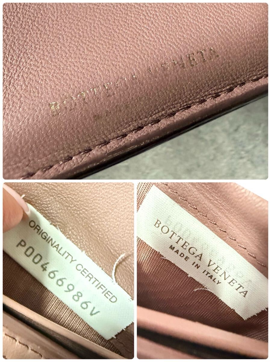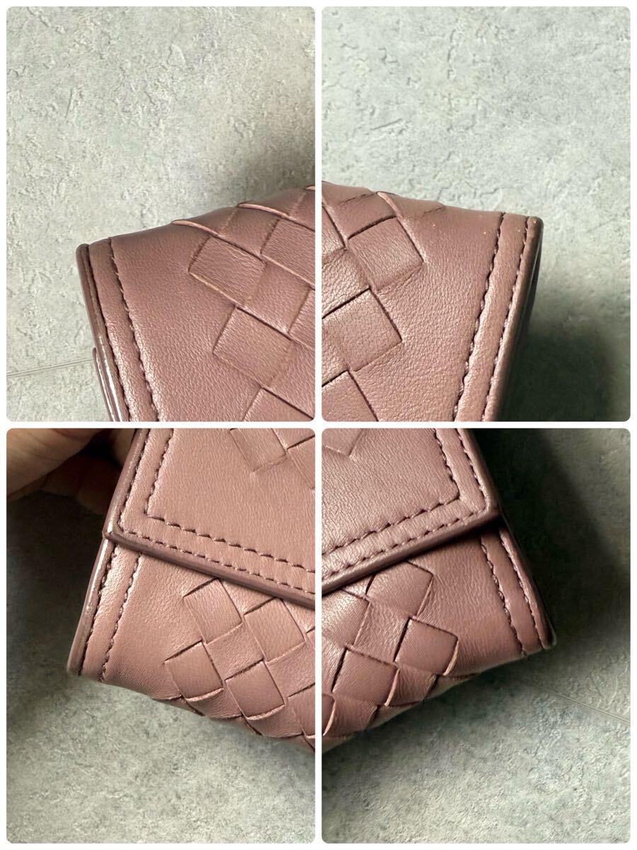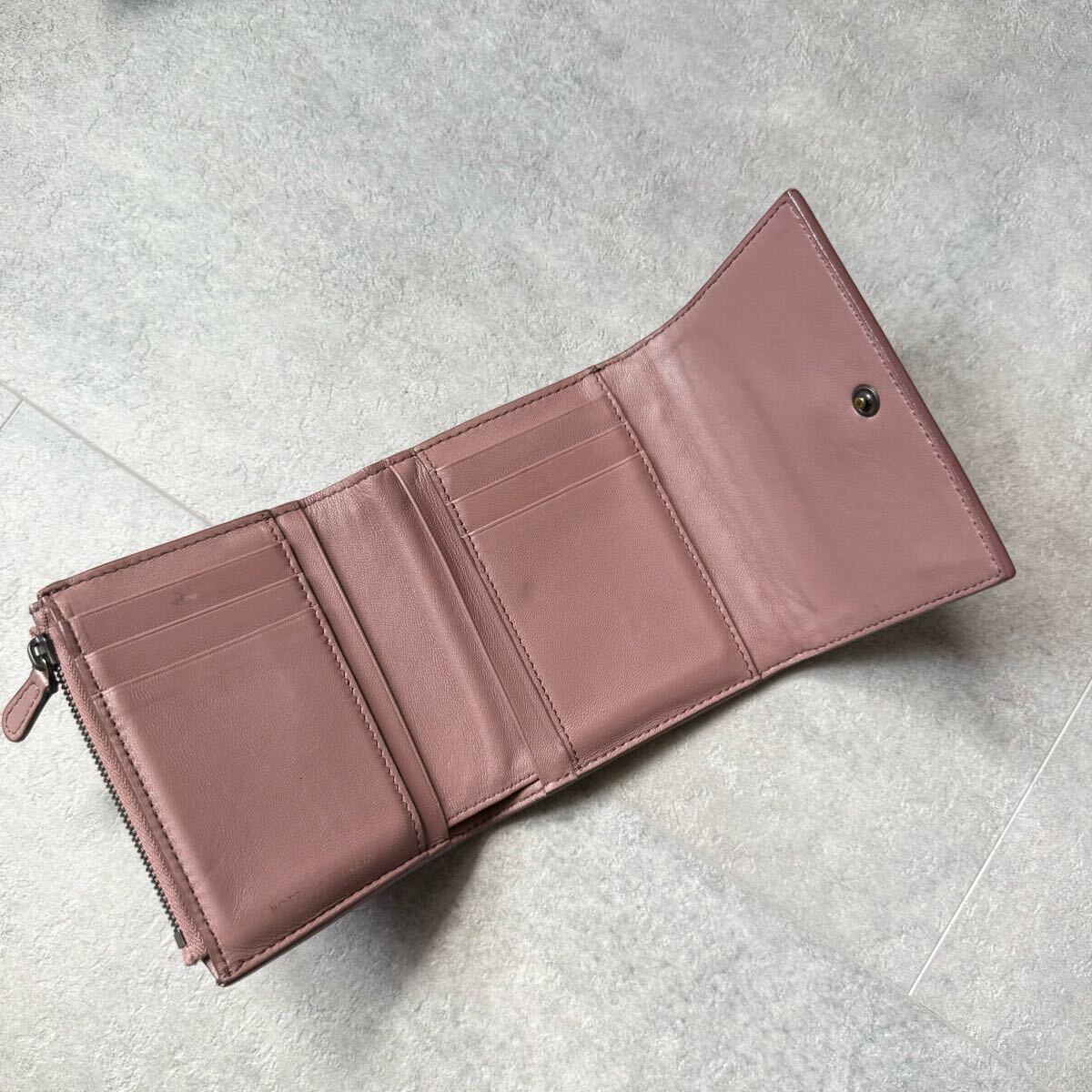 美品 希少 BOTTEGA VENETA ボッテガヴェネタ イントレチャート モーヴピンク レザー 三つ折り財布 コンパクトウォレット バタフライ 蝶