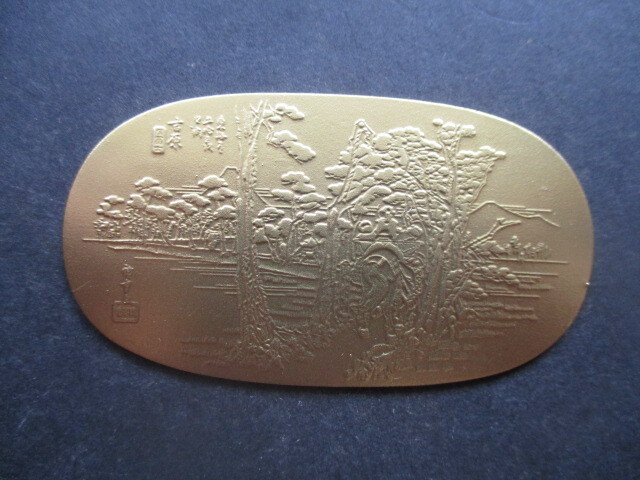 安藤広重の浮世絵『東海道五十三次』が精密に刻まれています。鋳造時期は不明ですが、鬼気迫るほどの再現技術です。