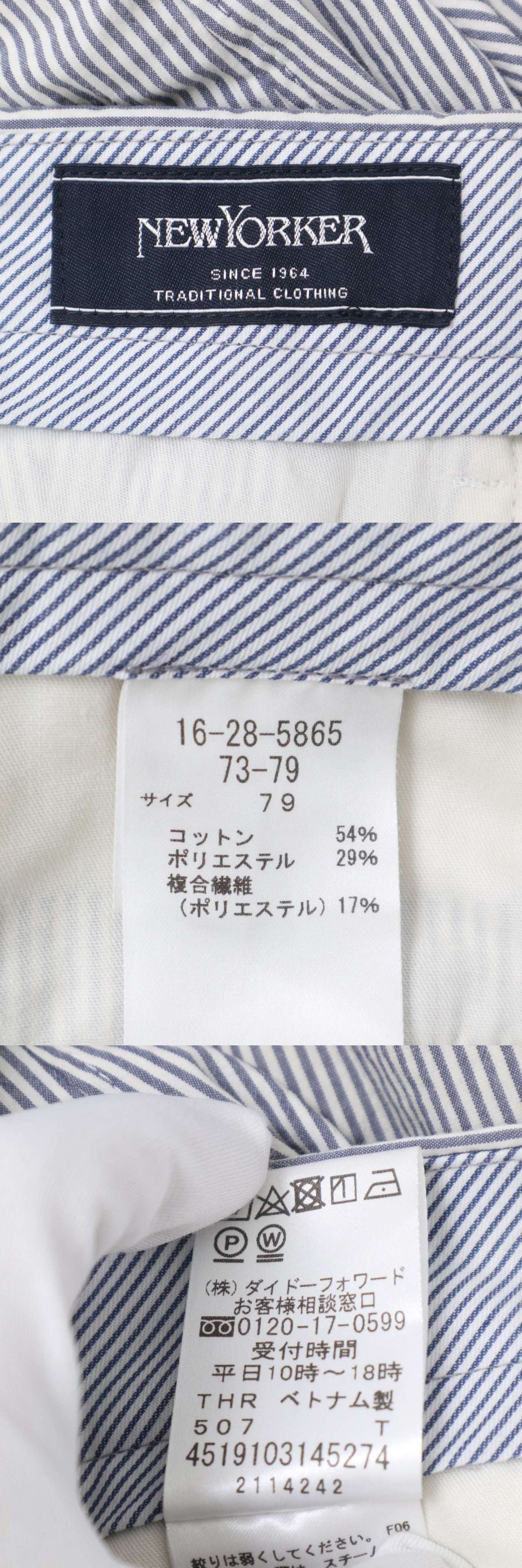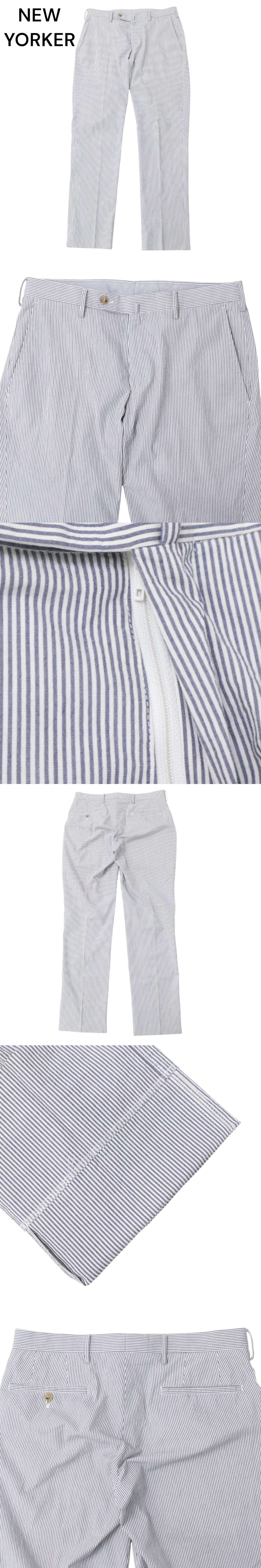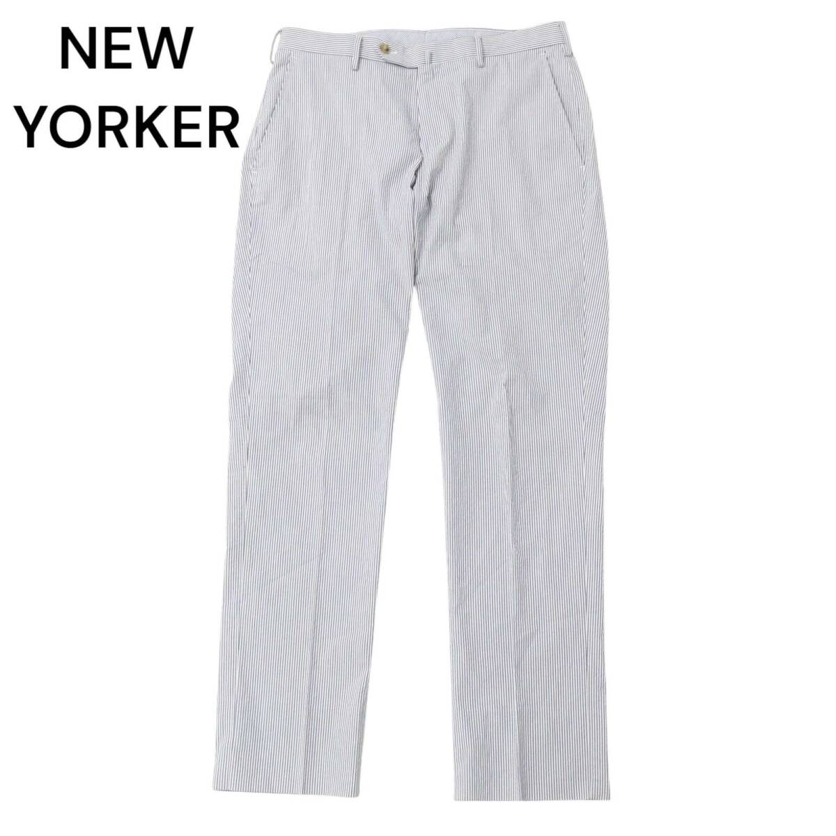 NEWYORKER ニューヨーカー 春夏 ストライプ★ スラックス パンツ Sz.79 メンズ ネイビー × 白