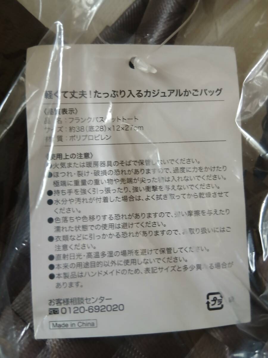 ★軽くて丈夫!たっぷり入るカジュアルかごバッグ「フランクバスケットトート」2種(黄・茶)あり<2種からの選択式> です。サイズは、約38(底28)×12×替える27cmです。材質はポリプロピレンです。未開封新品・美品のアミューズメント品です。それぞれ最後の一品です。