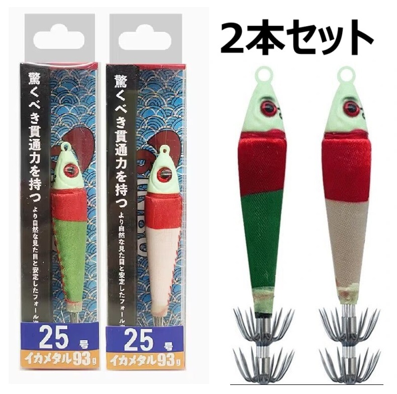 送料無料【2個セット】夜光スッテ25号 イカメタルエギ オモリグ メタルスッテ 鉛スッテ 送料無料