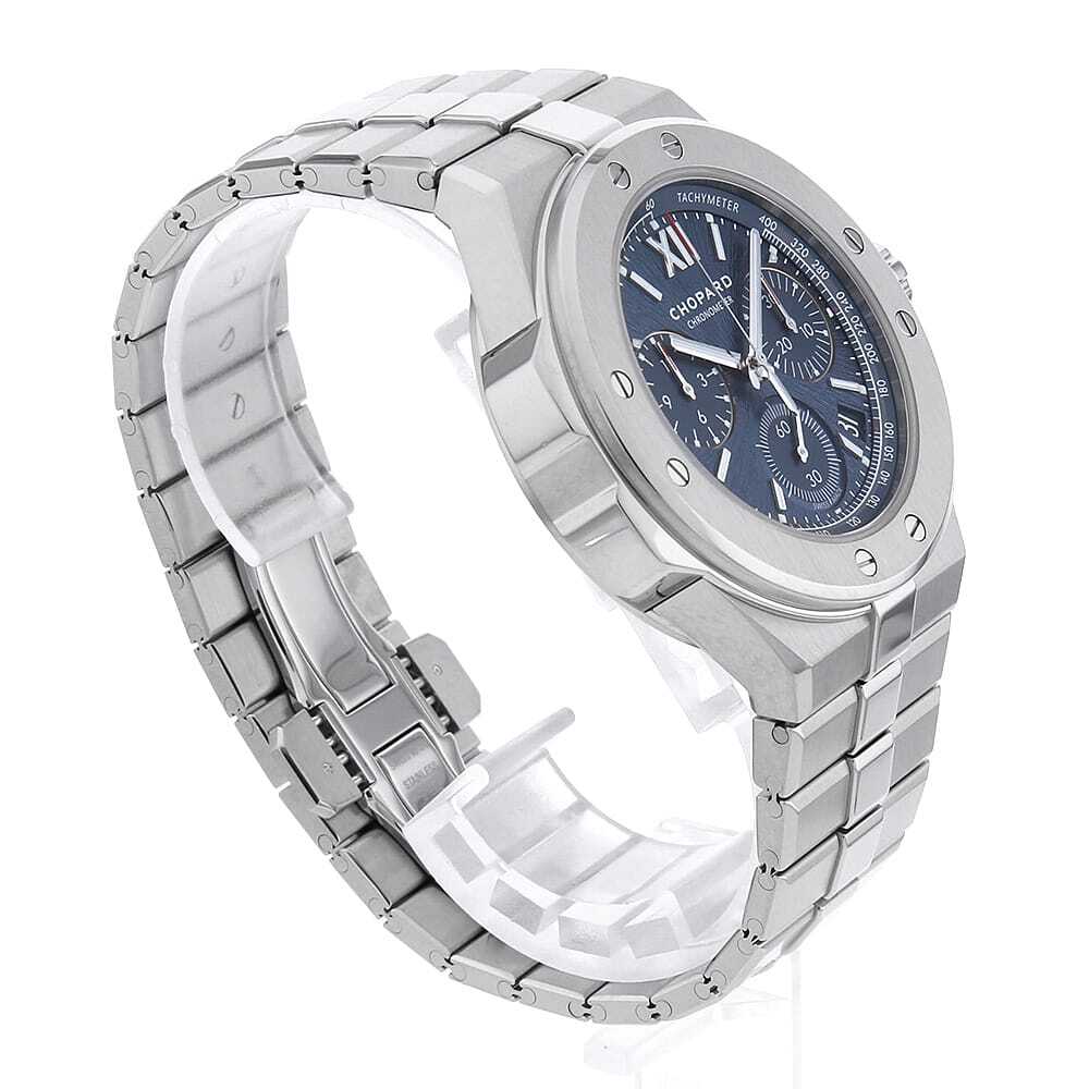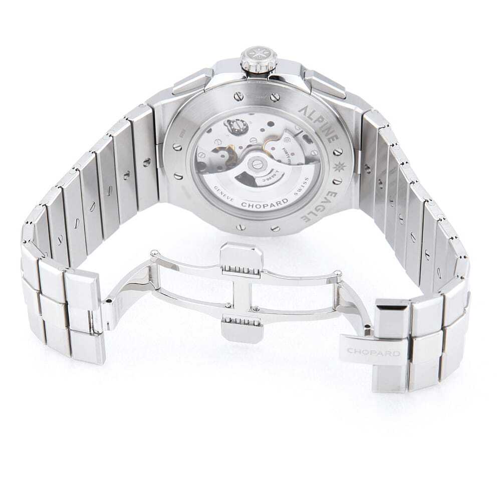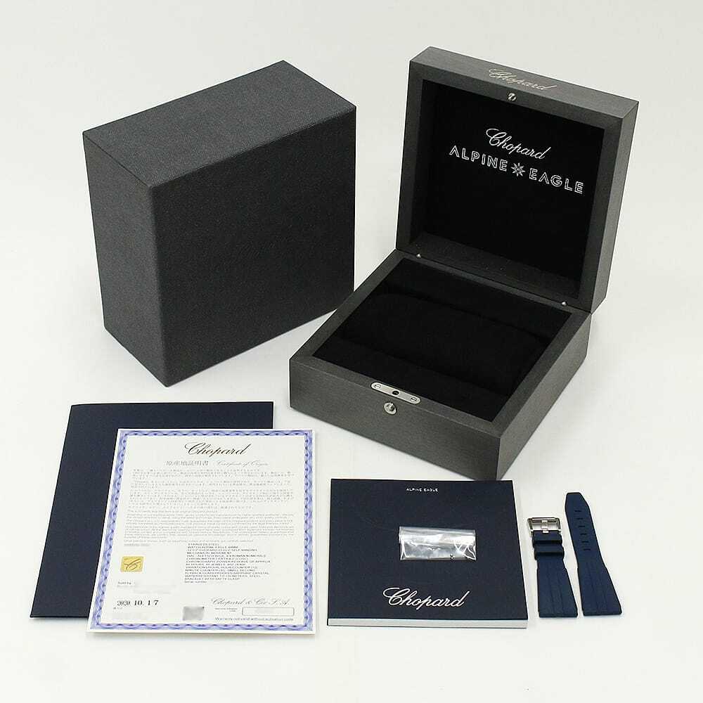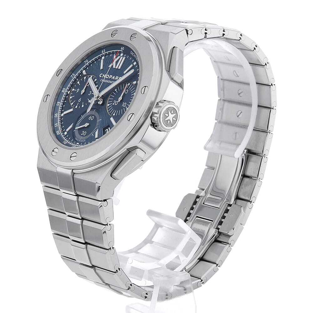 モデル情報 | ショパールの共同社長を務める「カール・フリードリッヒ・ショイフレ」が1980年に生み出した最初の時計サンモリッツ。それを現代的に解釈したモデルがアルパイン イーグルです。ブルーの文字盤は、鷲の目の虹彩を彷彿とさせる特殊な模様がデザインされています。また、クロノグラフ針は鷲の羽を思わせる矢の形をしており、アルプスの鷲とそのビオトープへの情熱、自然との調和を感じさせます。44mmケースにフライバック機能を備えたクロノメーター認定クロノグラフムーブメントを搭載。100m防水。 |