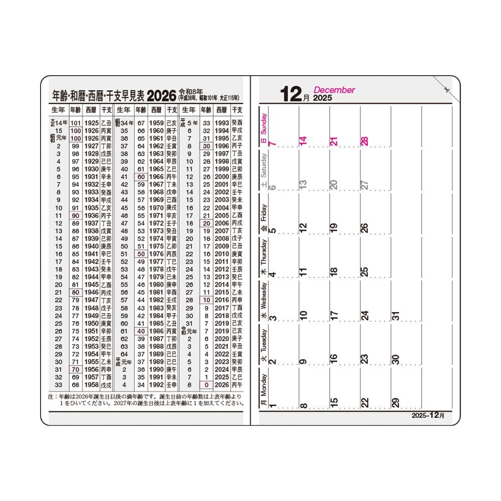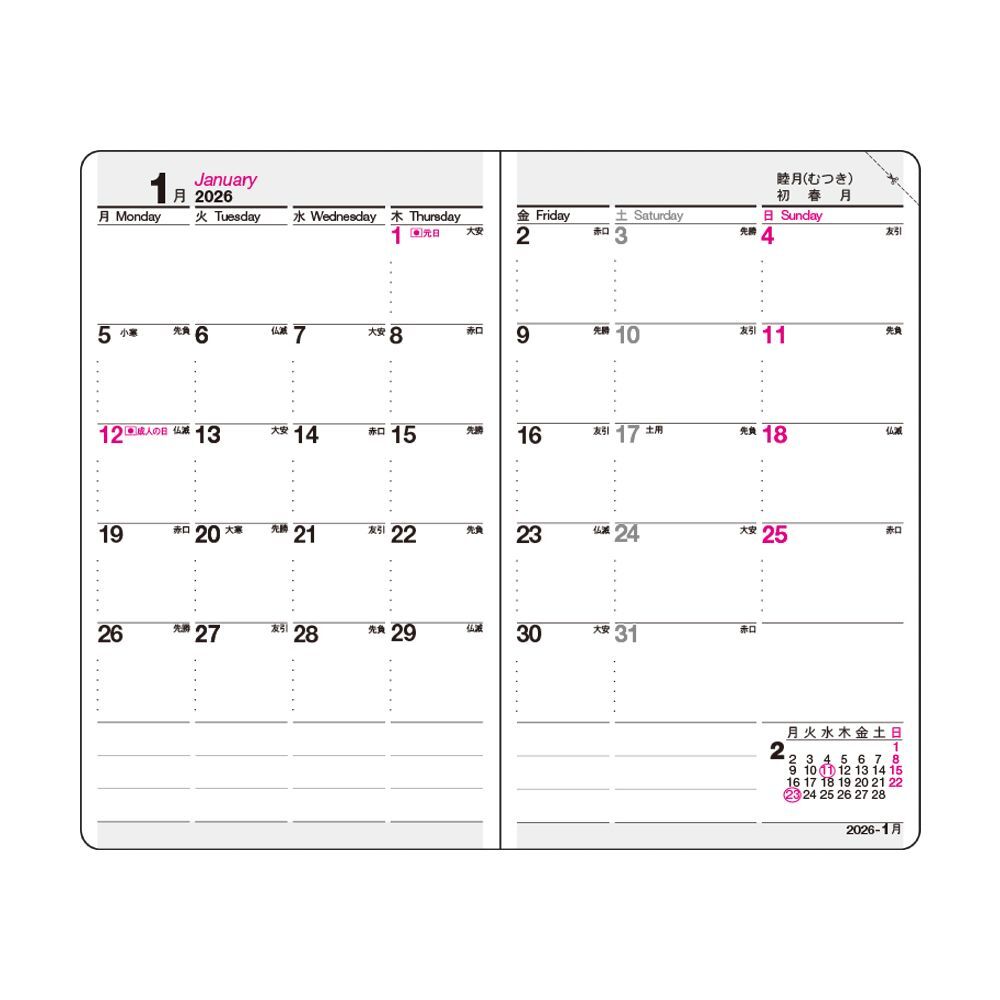一週間を左右に配したブロックタイプ、開きやすい縦型。