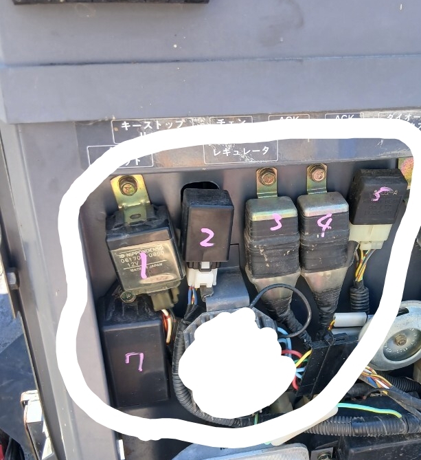 イセキコンバインHA20から外したフロント操作レバー下のリレーになります。
