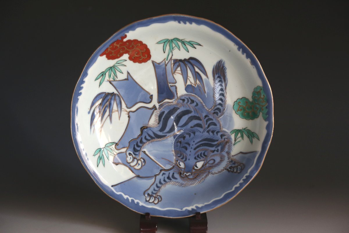 ★★★ 幕末期 伊万里 志田窯 色絵 竹に虎図 皿 ★★★