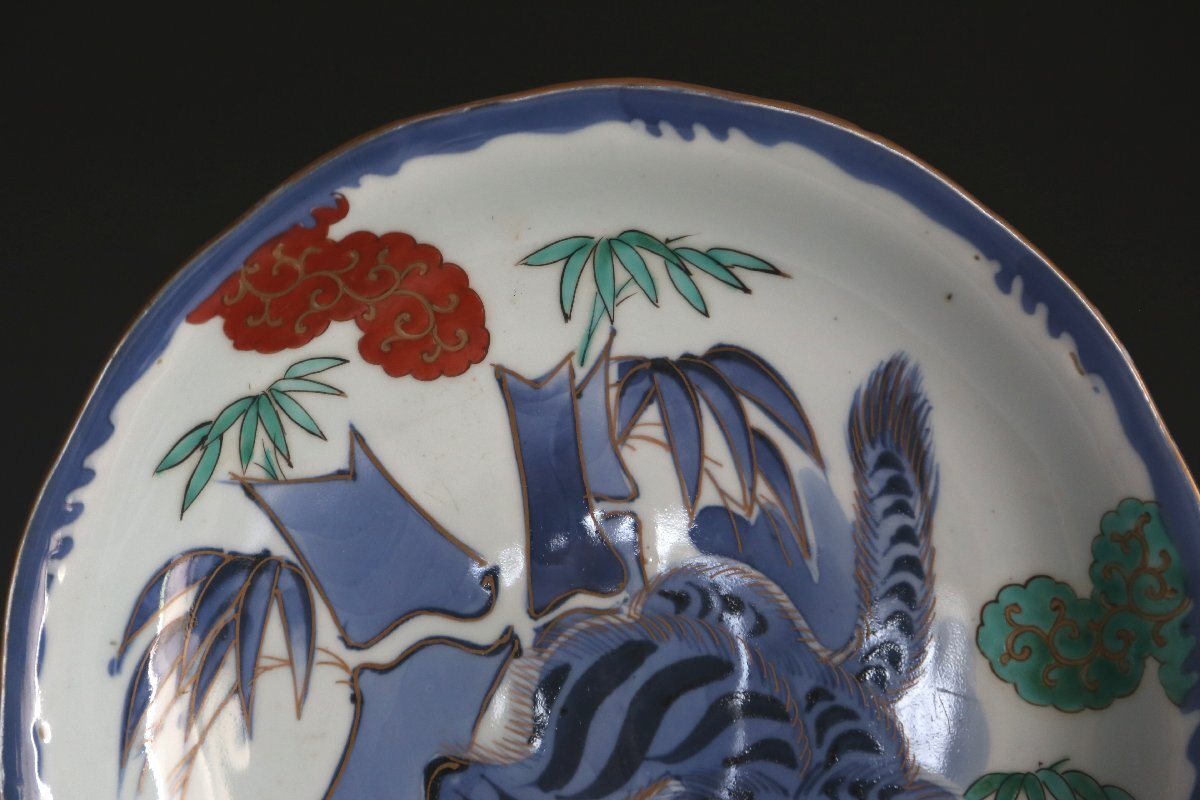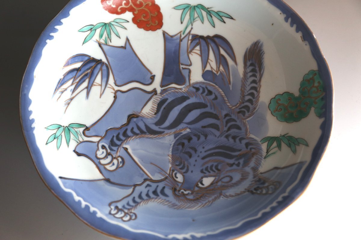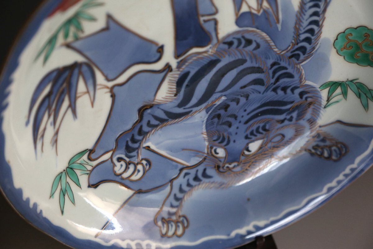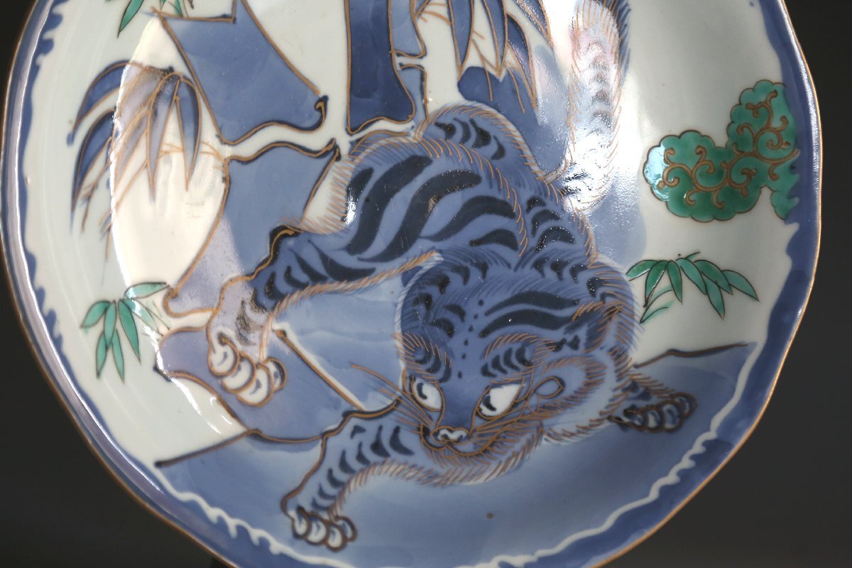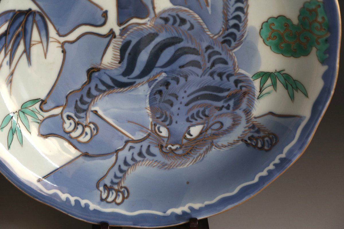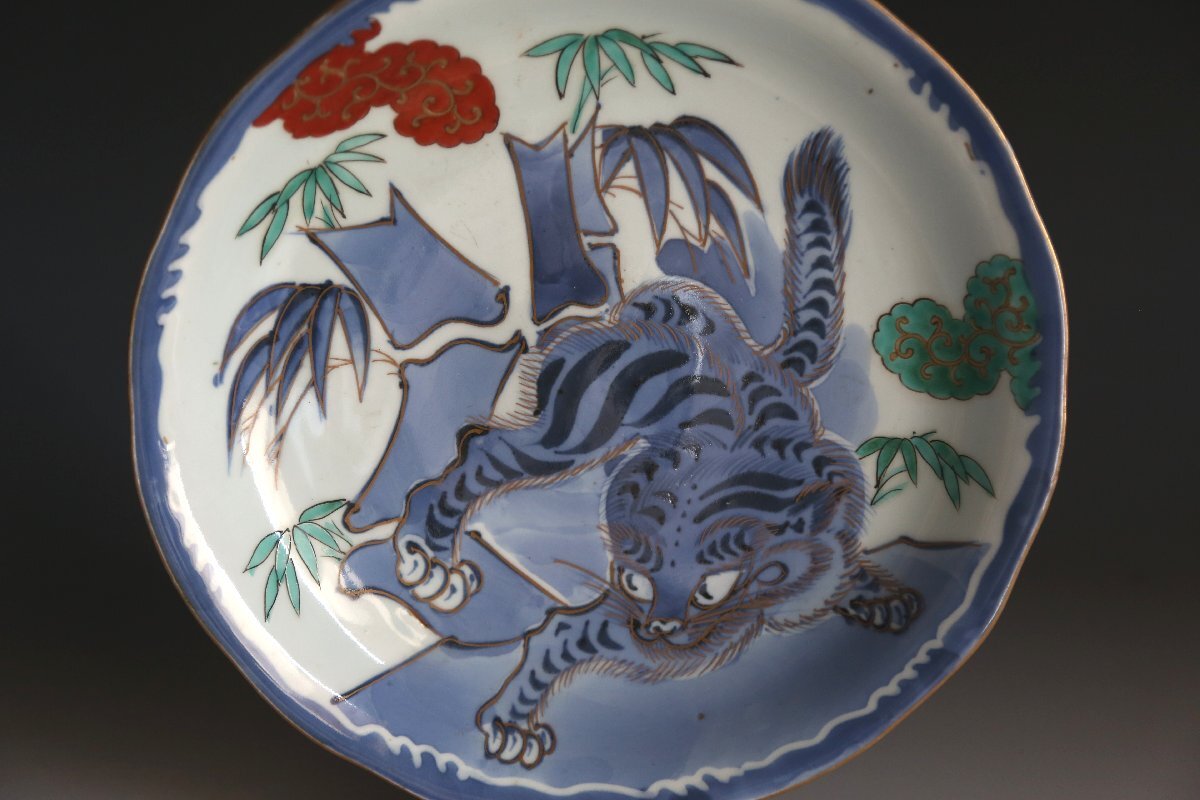 ★★★ 幕末期 伊万里 志田窯 色絵 竹に虎図 皿 ★★★ 62