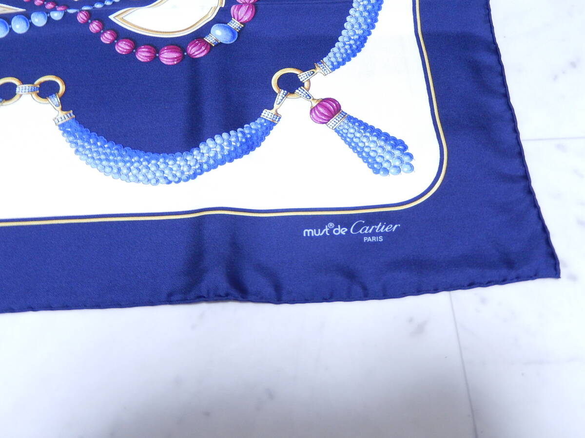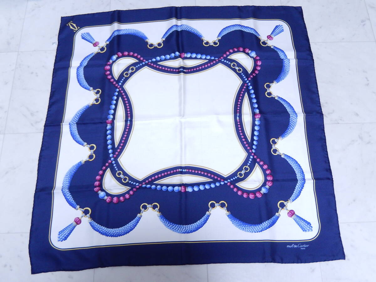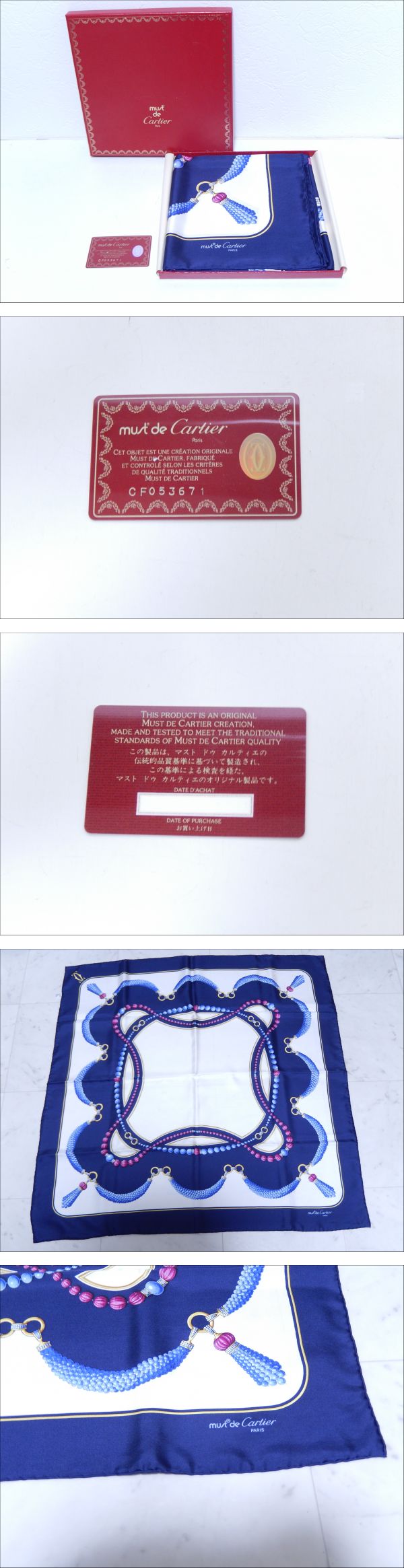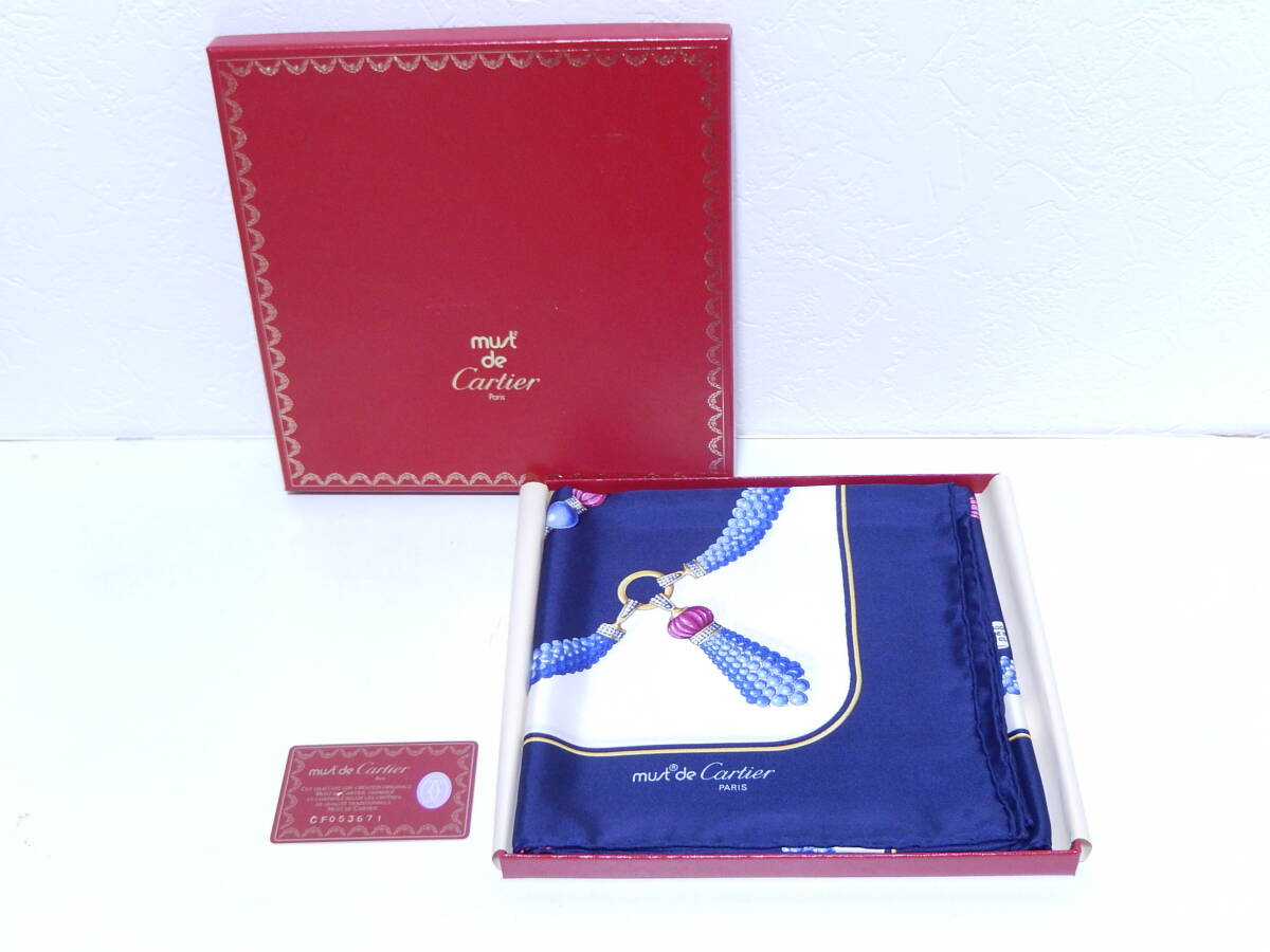| 【管MI0512】6000円~ 未使用 カルティエ must de Cartier マストライン 大判 スカーフ シルク100% ストール ギャランティ 箱付き | ||