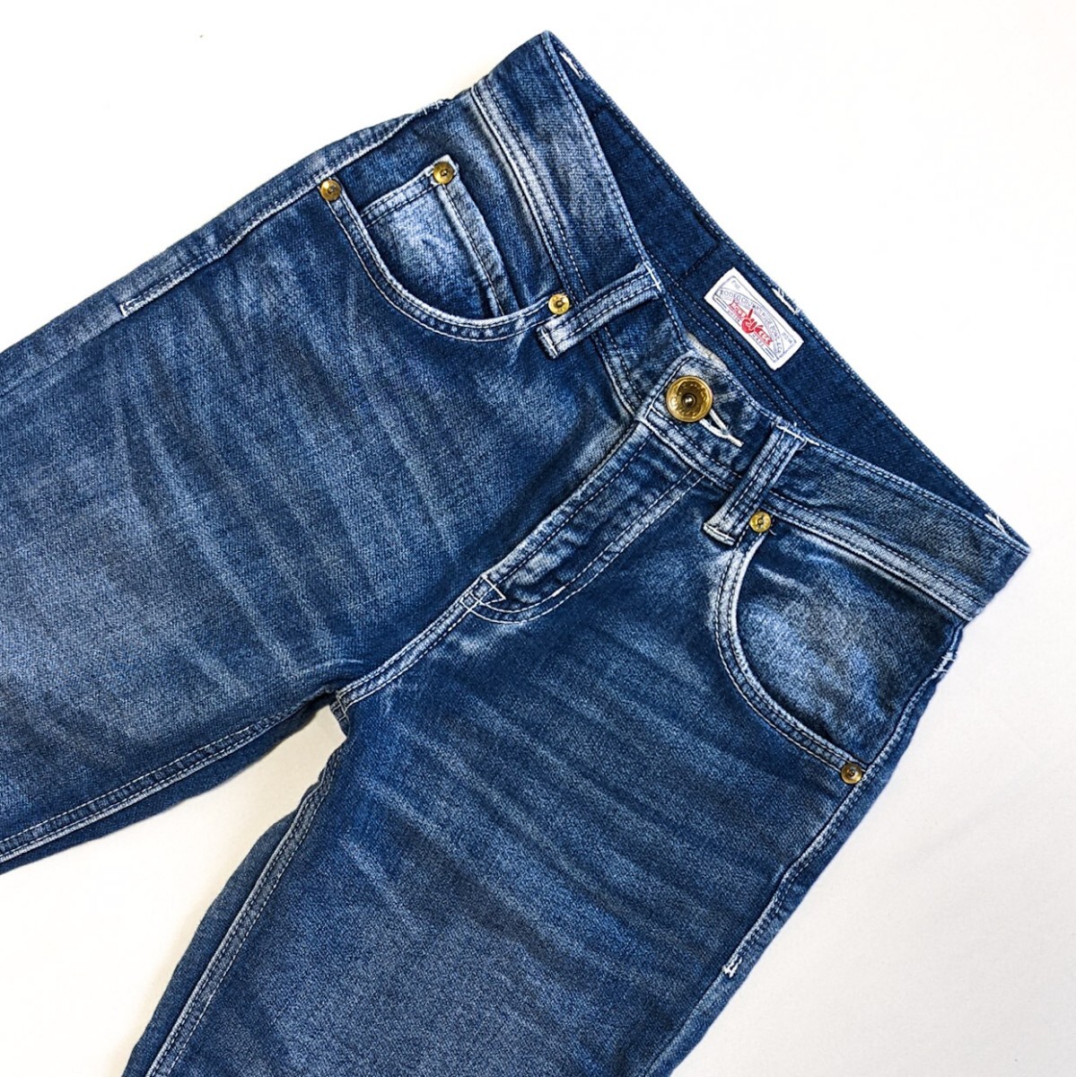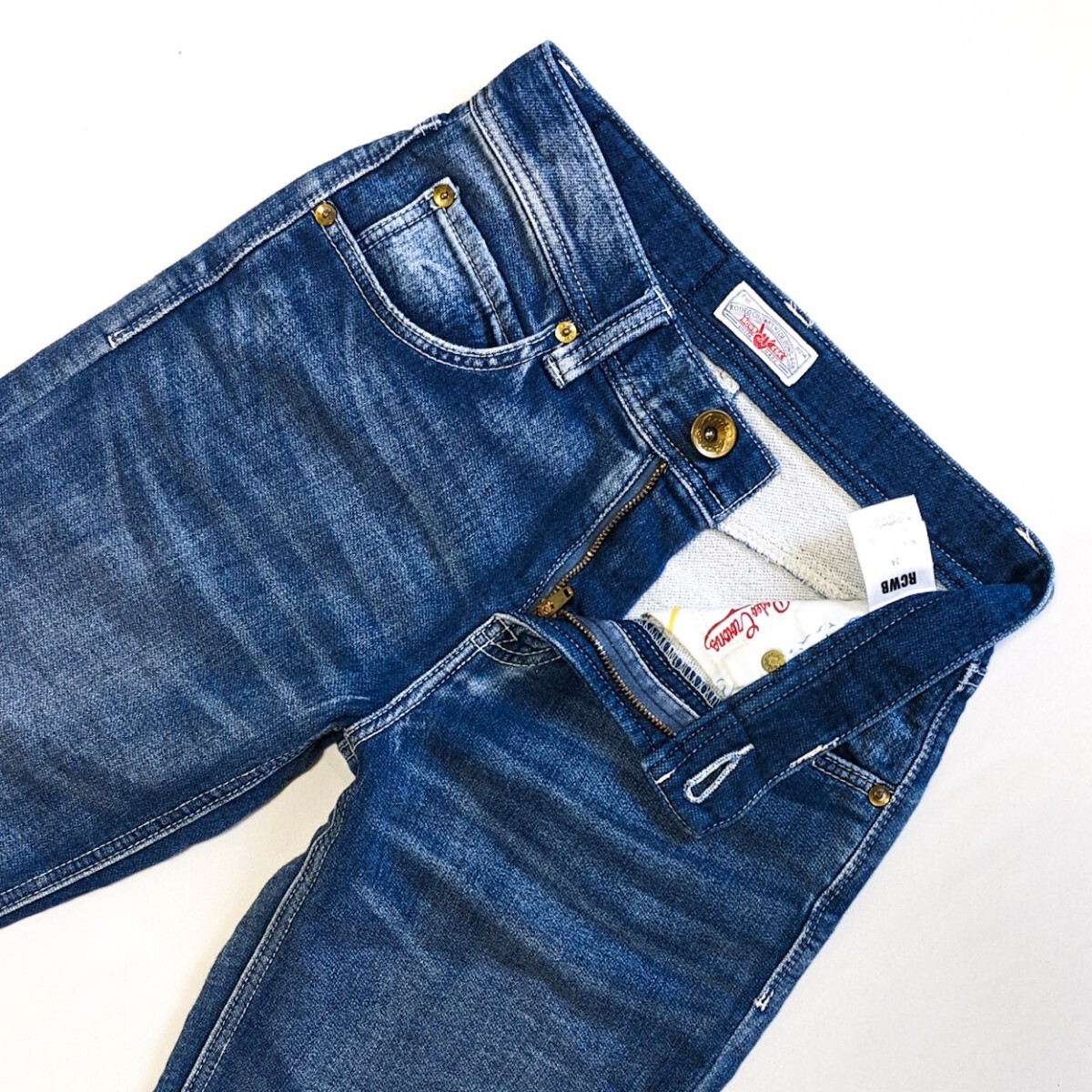 スウェットのような素材感のデニムで、縦落ちなどユーズド加工がおしゃれな一本。