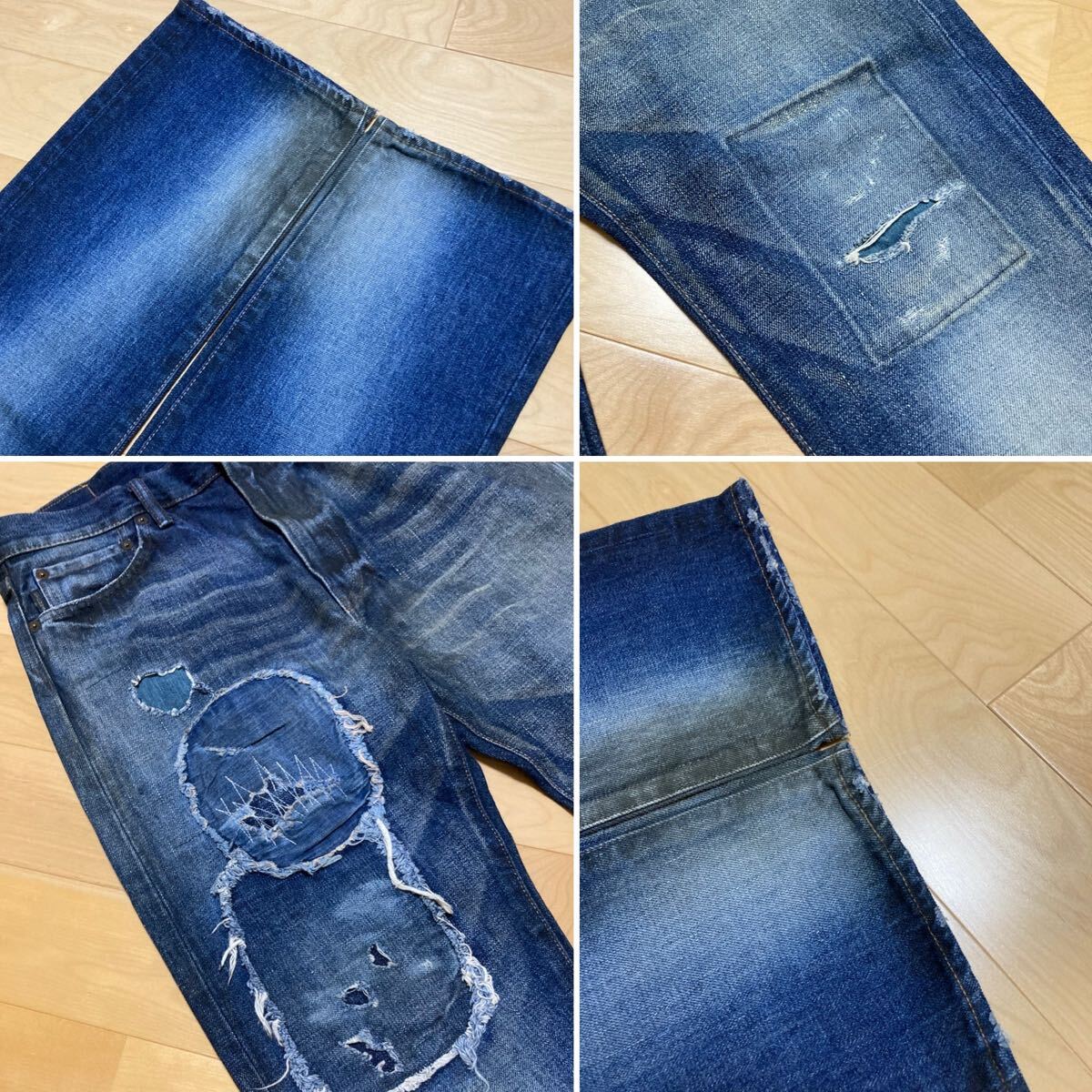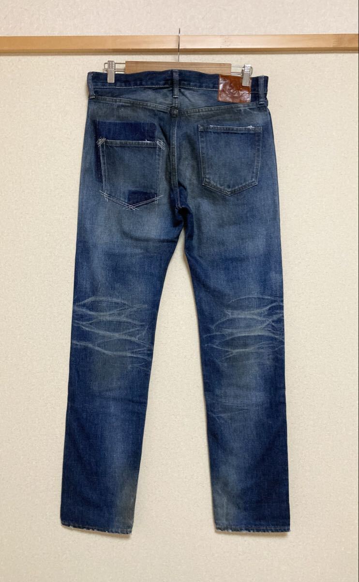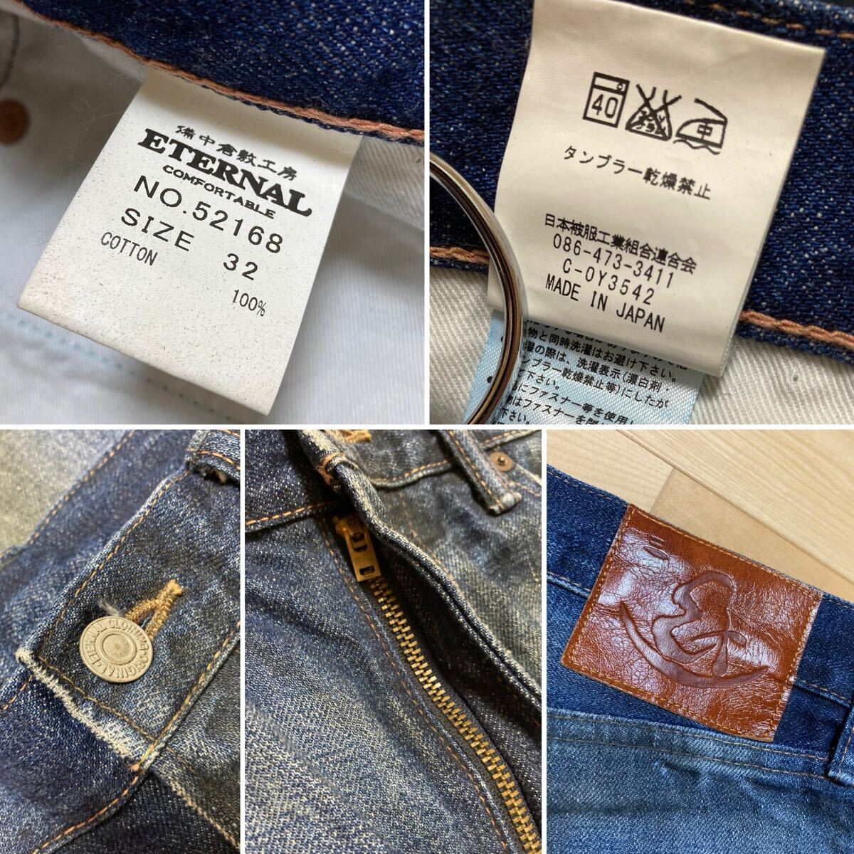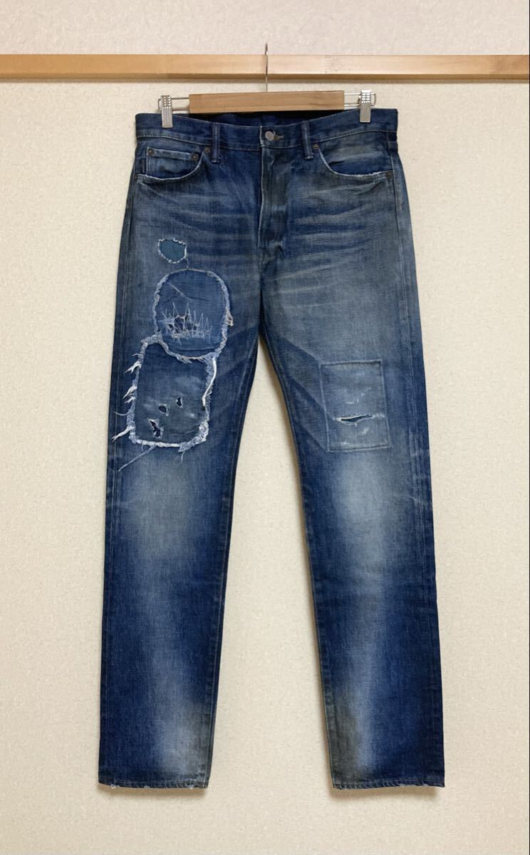 美品☆W32 [ETERNAL] 定価25,300 リアルユーズド リメイク加工 ストレート インディゴデニムパンツ 32 日本製 52168 エターナル