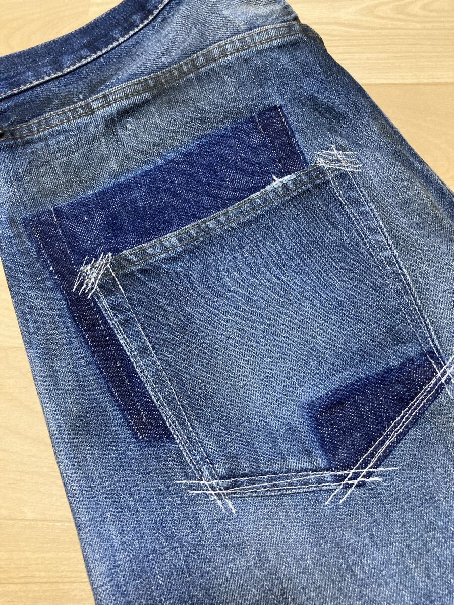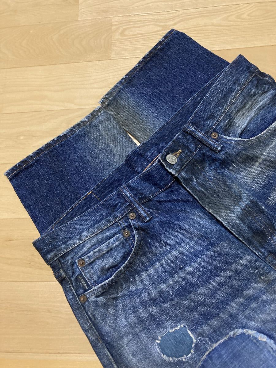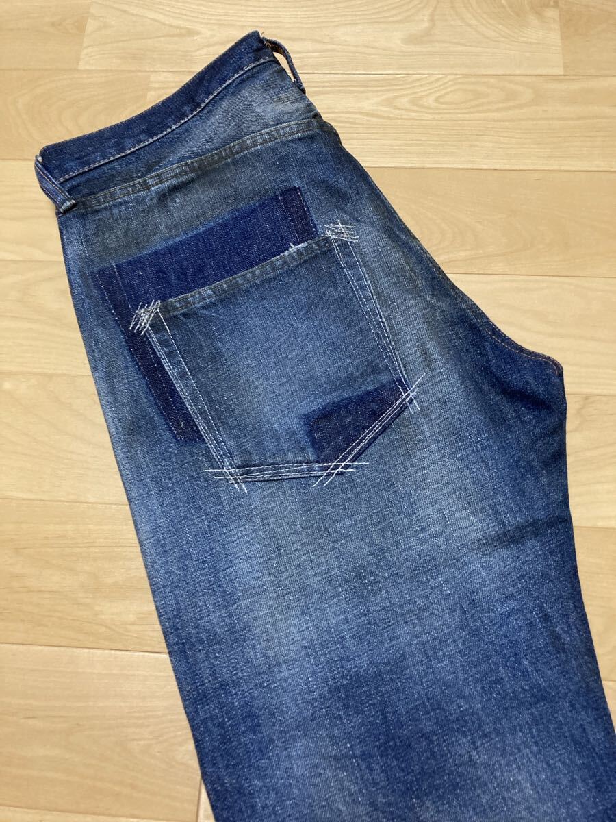 美品☆W32 [ETERNAL] 定価25,300 リアルユーズド リメイク加工 ストレート インディゴデニムパンツ 32 日本製 52168 エターナル