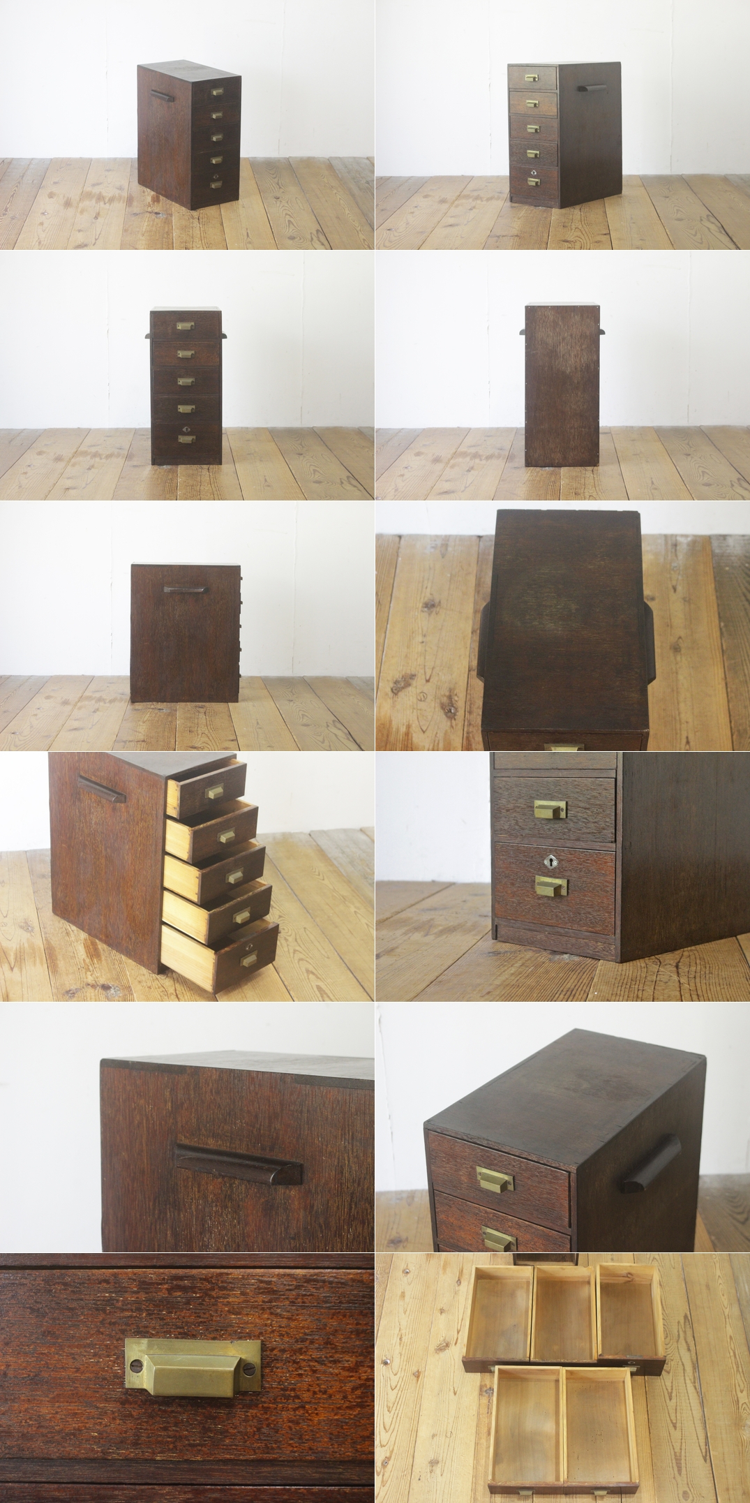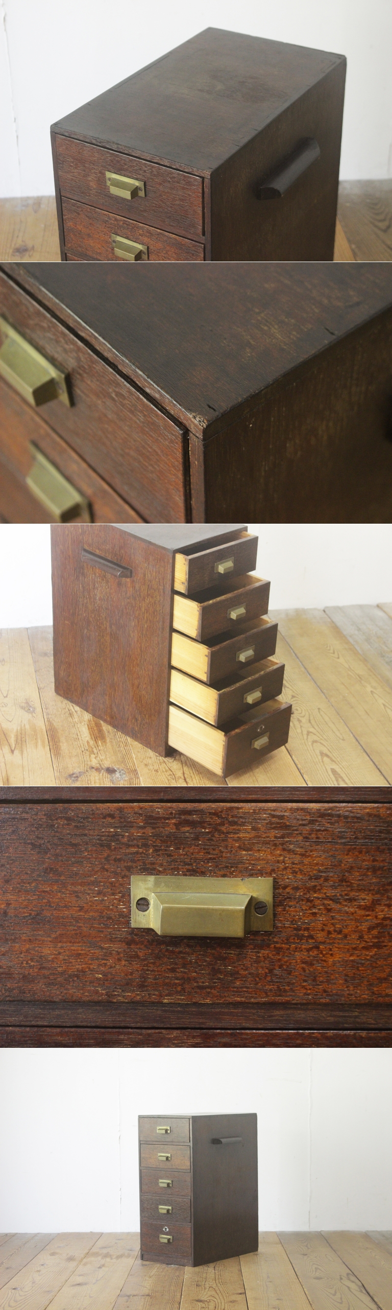 レトロ 引き出し 抽斗 5杯 ドロワー 収納 小物入れ レターケース A4 花台 木製 ヴィンテージ
