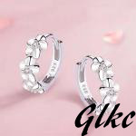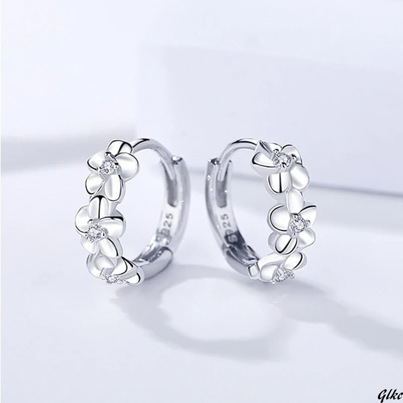 【S925純銀使用、プラチナコーティングで高級感と耐久性あり】 フープピアス プルメリア ハワイアン CZダイヤ レディース シルバー