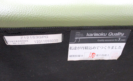 カリモク 3人掛けソファ チターノ Chitano 本革 グリーン系 Karimoku 札幌市