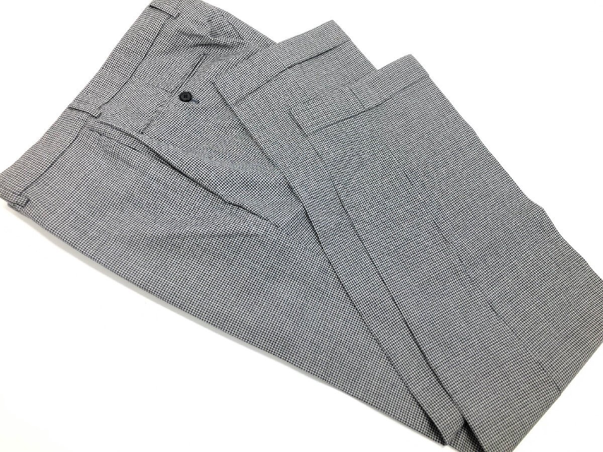 ・スラックス・・・ウエスト実寸約80~81センチ(2センチ出し、4センチ詰め可能です)、股上約26センチ、渡り幅約31~32センチ、股下約79~80センチ、総丈約103センチ、裾幅約18.5センチ、ダブル仕上げ(ダブル幅4センチ、最大でプラス8センチ長くできます)