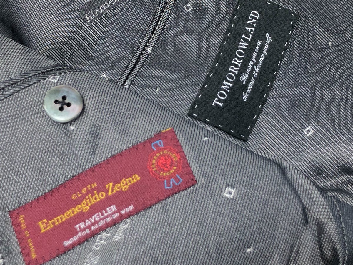 【トゥモローランド TOMORROWLAND】ゼニア生地 68065506001 3ボタン段返り スーツ (メンズ) 46相当 グレー系 マイクロ千鳥柄 ◇35RMS2278◇