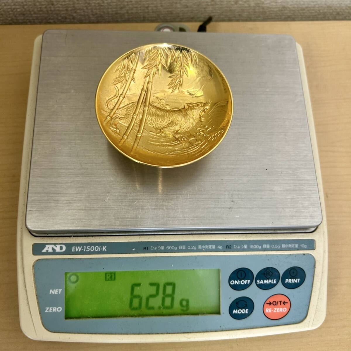 【T0902】 24K GP刻印 金杯 メッキ 1点 重量 : 約62.8g 虎 酒器