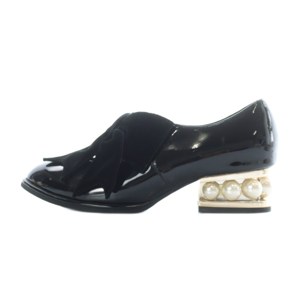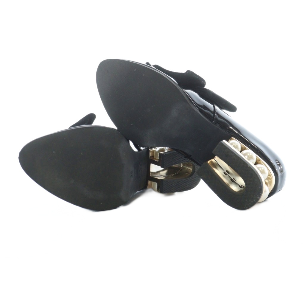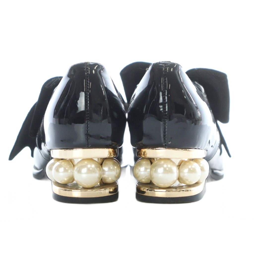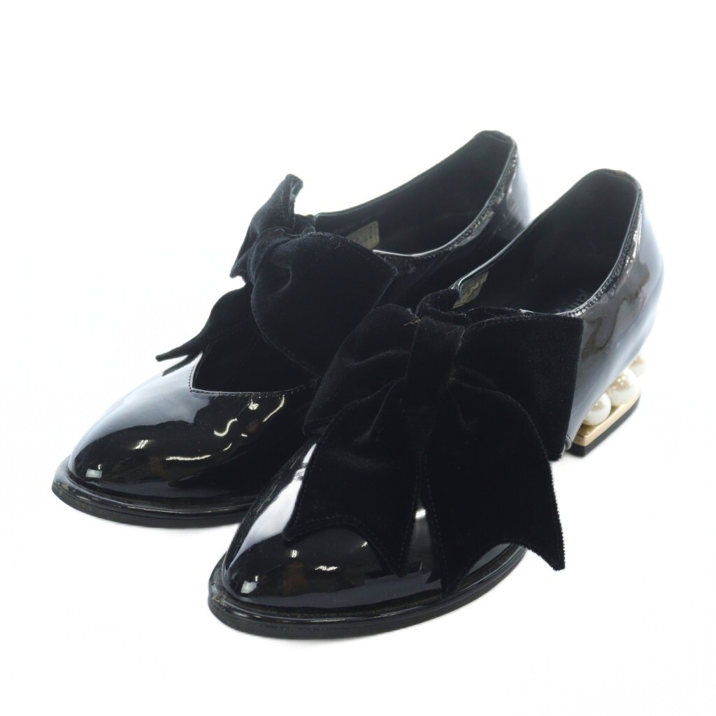 ジェフリーキャンベル Jeffrey Campbell デザインヒールベルベットリボンシューズ パンプス フェイクパール 36 23cm 黒 ブラック