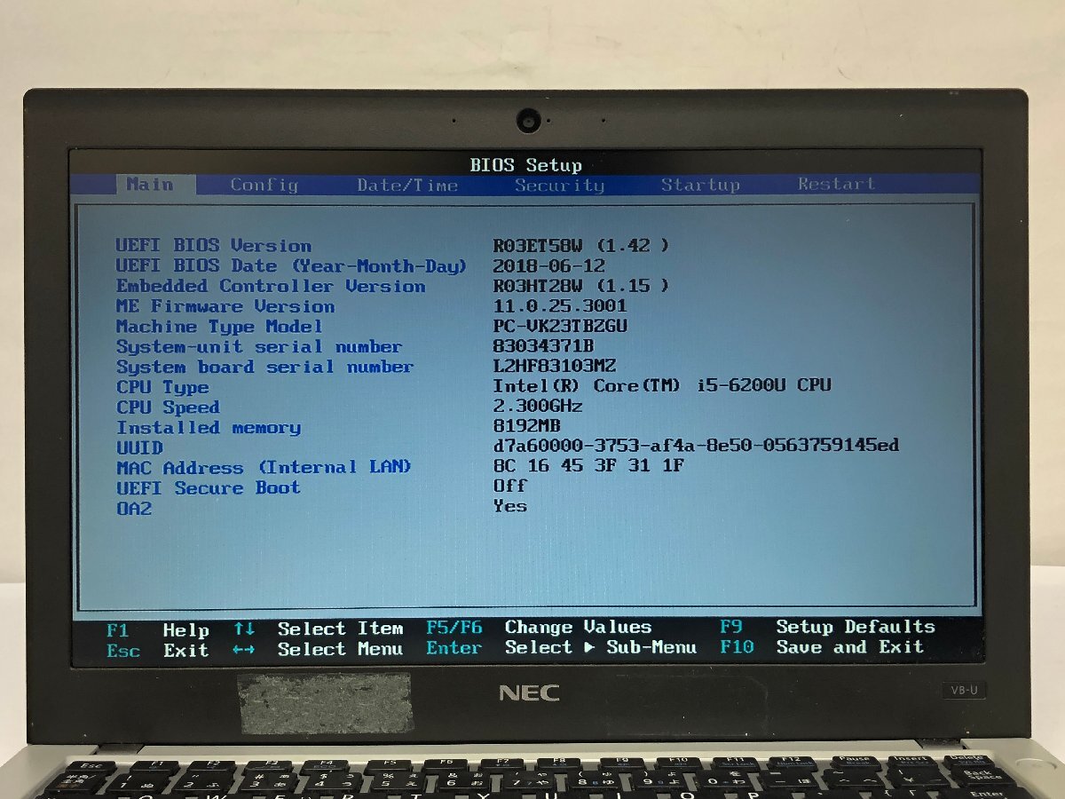 ジャンク/ NEC PC-VK23TBZGU Intel Core i5-6200U メモリ8.19GB ストレージ無し 【K20487】