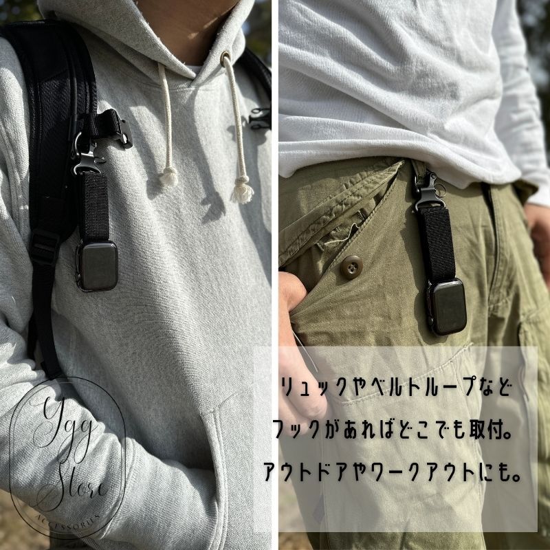 YGG★アップルウォッチ キーリング カラビナ フック式 懐中時計風 バッグ カバン ベルト バンド applewatch アウトドア ミリタリー