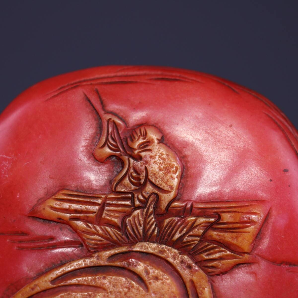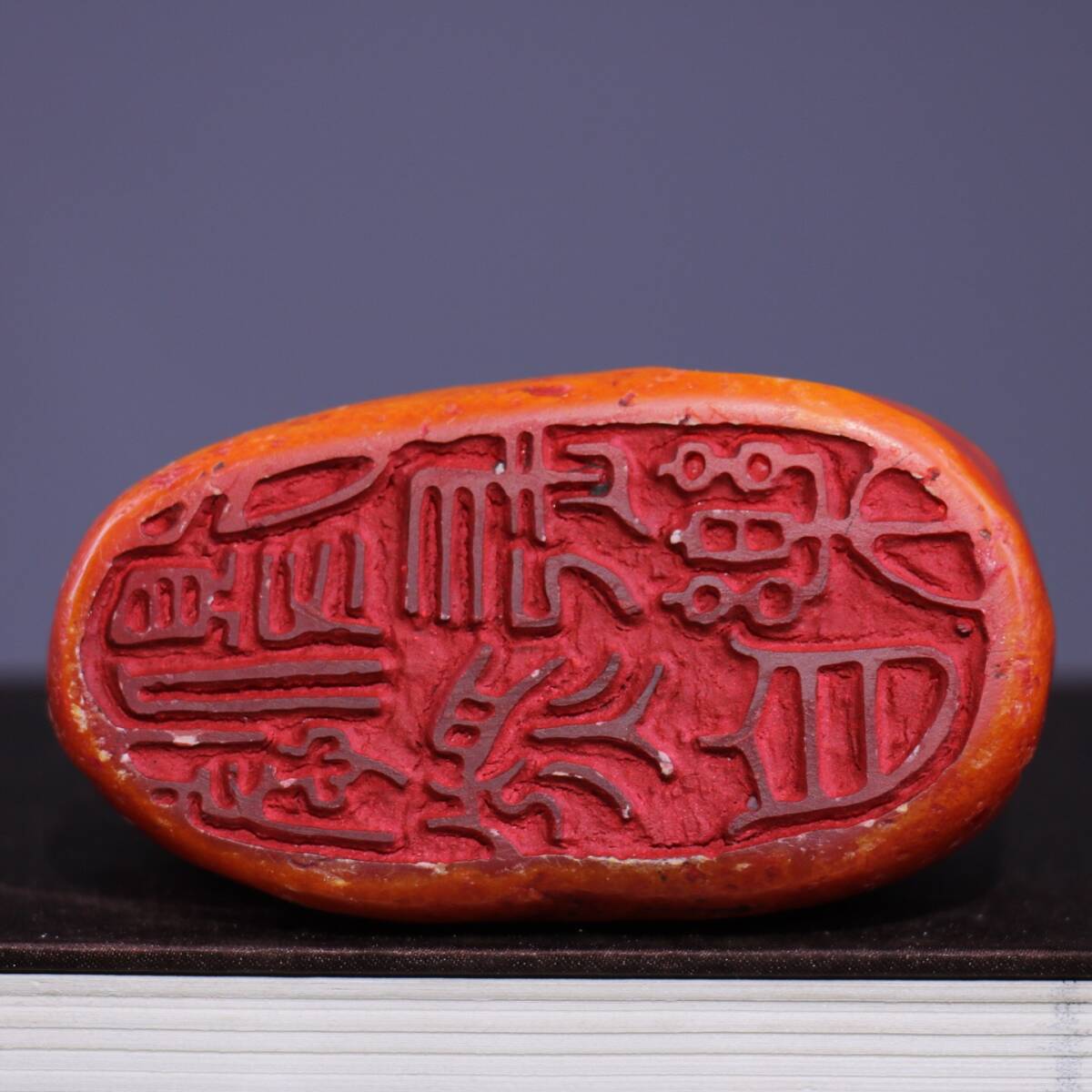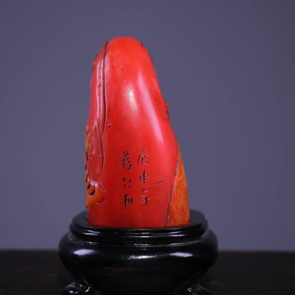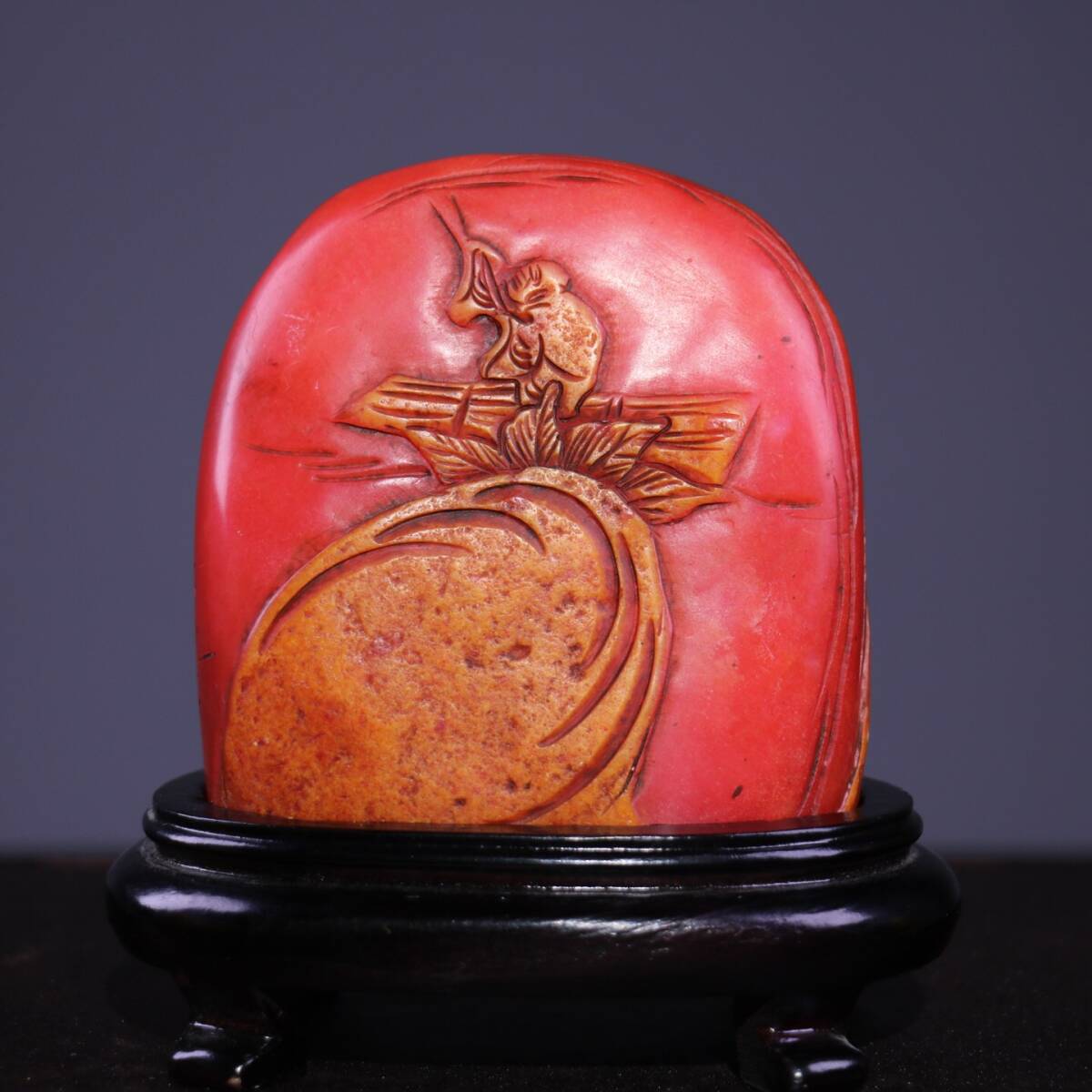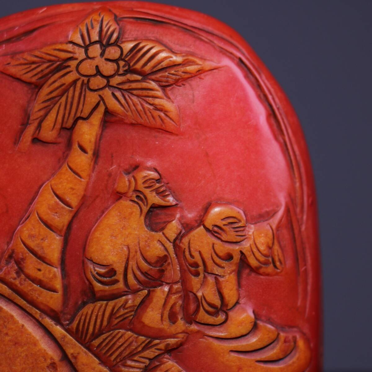 【超珍館蔵】寿山石 紅田黄石 細密彫 深山聚賢紋印章 印章 印鑒 文房具 書道品 古賞物 古董品 古美術品 時代物 旧家蔵出 稀少珍蔵品