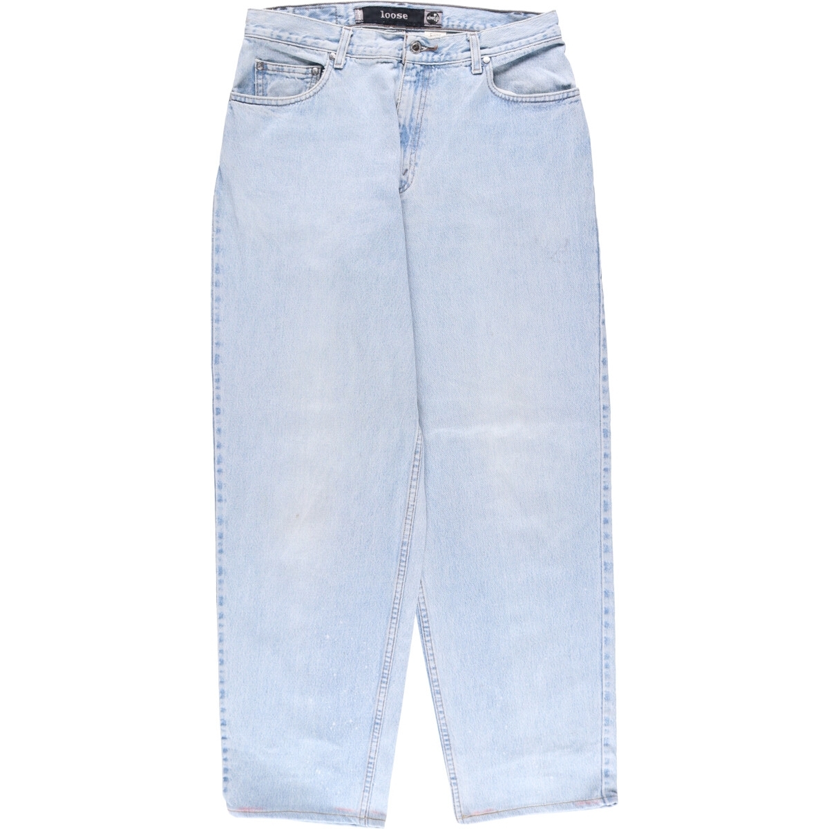 着用感: メンズw33 表記サイズ: W34 L34 ウエスト: 84cm 股上: 28.5cm 股下: 80cm もも周り: 71cm 裾周り: 44cm ![]() | ![]() ランク:C USEDデニムですので使用感、擦れ、色落ちなどございますが、まだまだご愛用していただけます。 古着という事をご理解の上ご注文よろしくお願いします。 【状態追記】 ●全体に色褪せあり ●両裾上げ済み ●前、両ポケット・左側全体・右腿・裾に汚れ 前立てに擦れ ●後、右ウエスト周り・ヒップ・両裾に汚れ 左裾に擦れ ●内側、前両ポケット口・右ポケット内袋・右裾に汚れ |