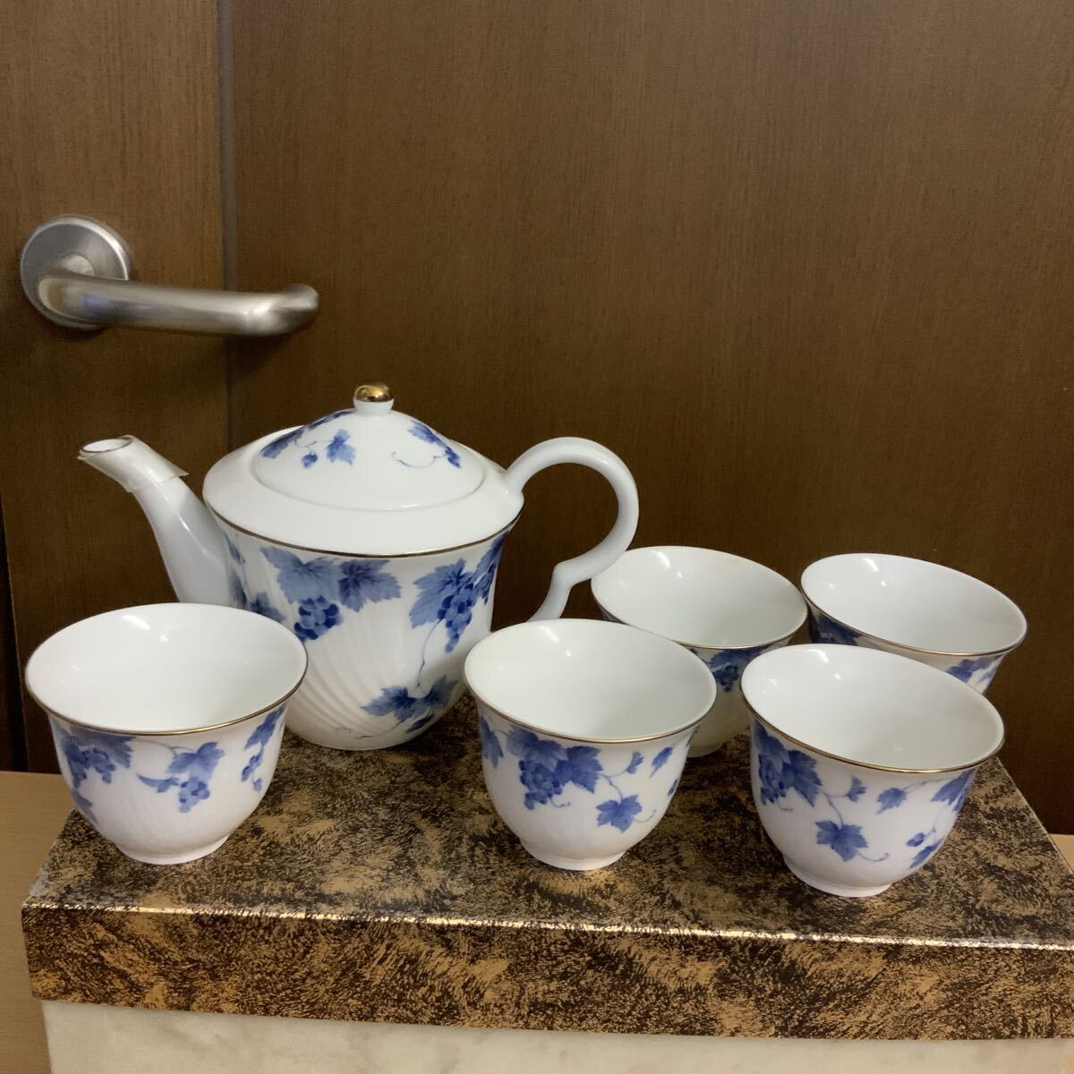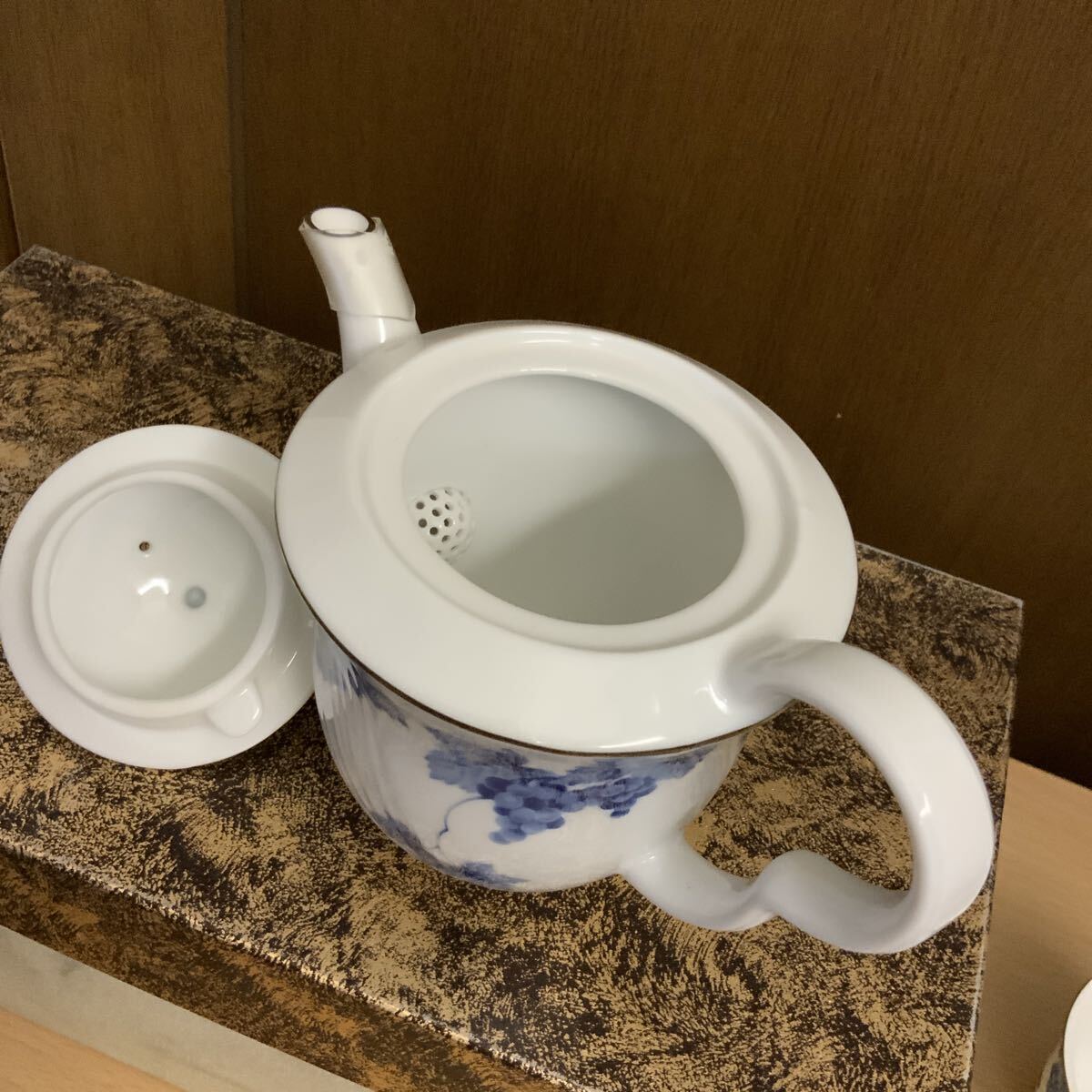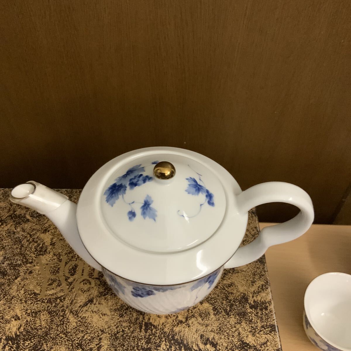 大きさは急須:上部外径11cm、底部外径6cm、高さ13cm、湯呑み:上外径8cm、底部外径3.5cm、高さ6cm。