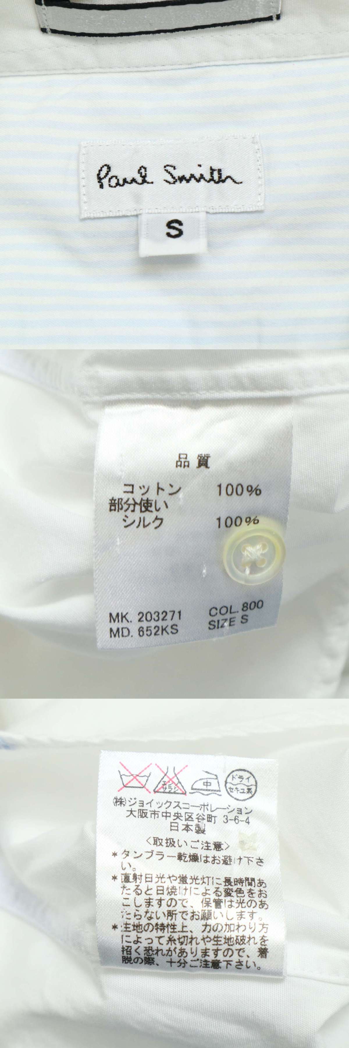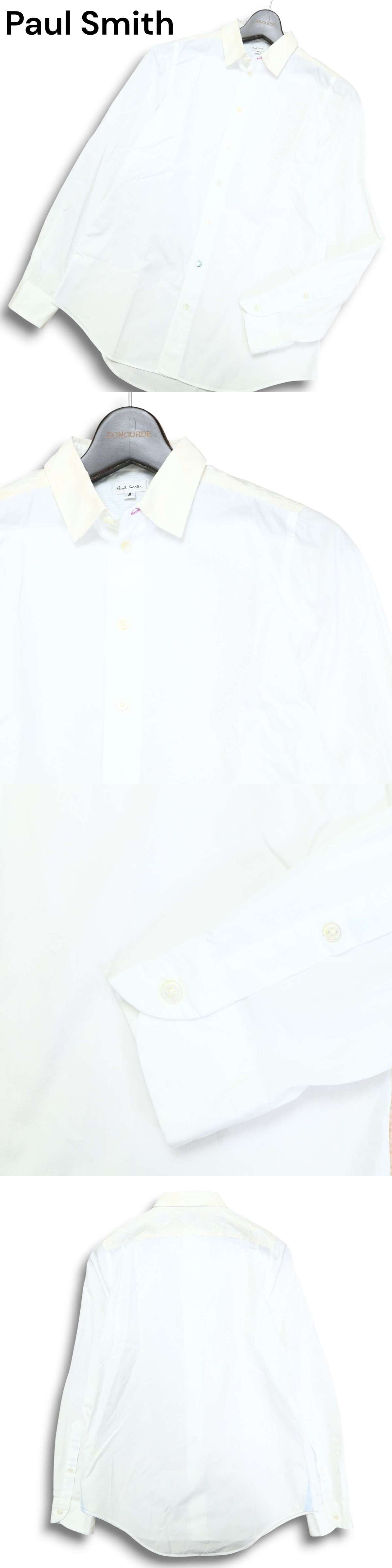 Paul Smith ポールスミス メインライン★ 通年 シルク切替 デザイン 長袖 コットン シャツ Sz.S メンズ 白 日本製
