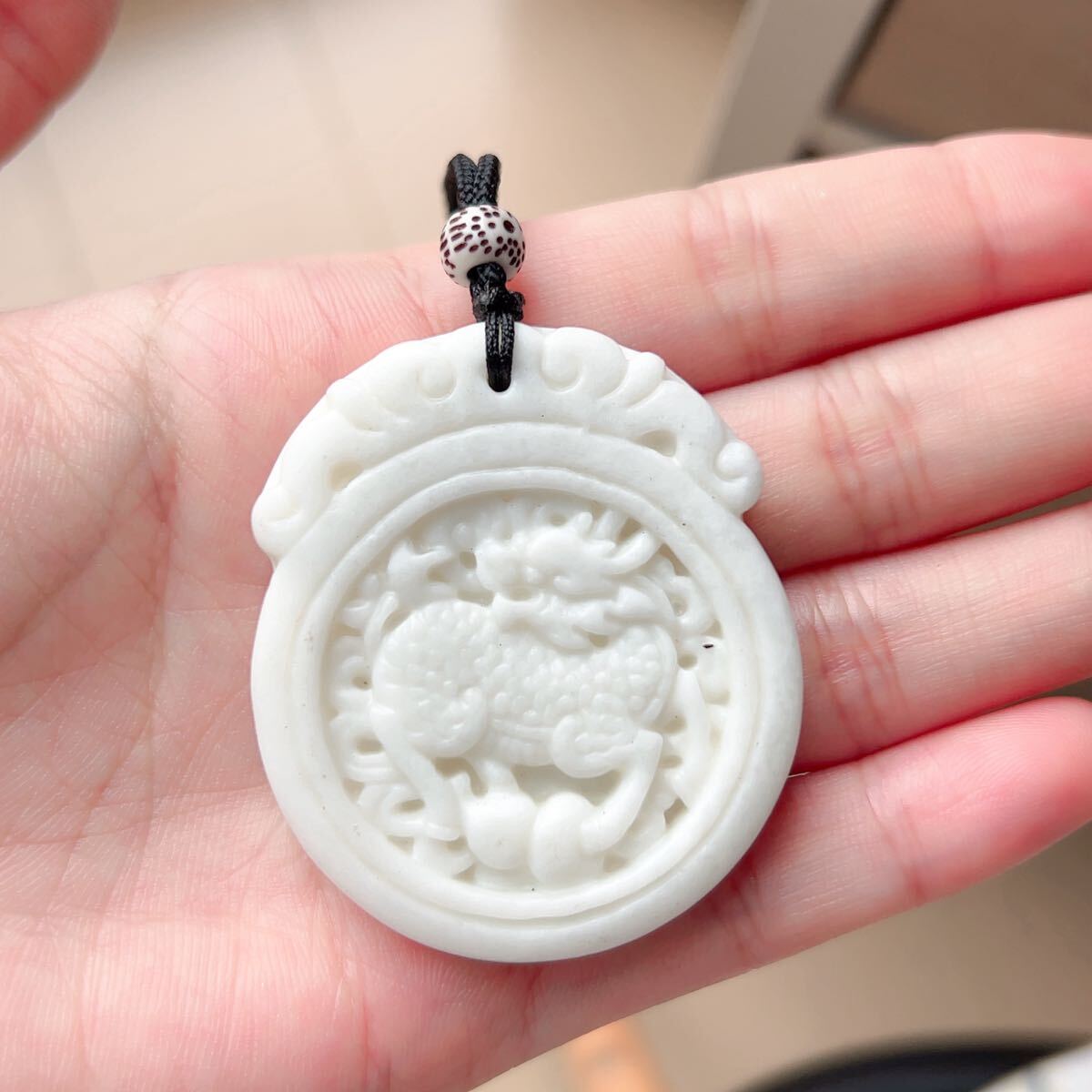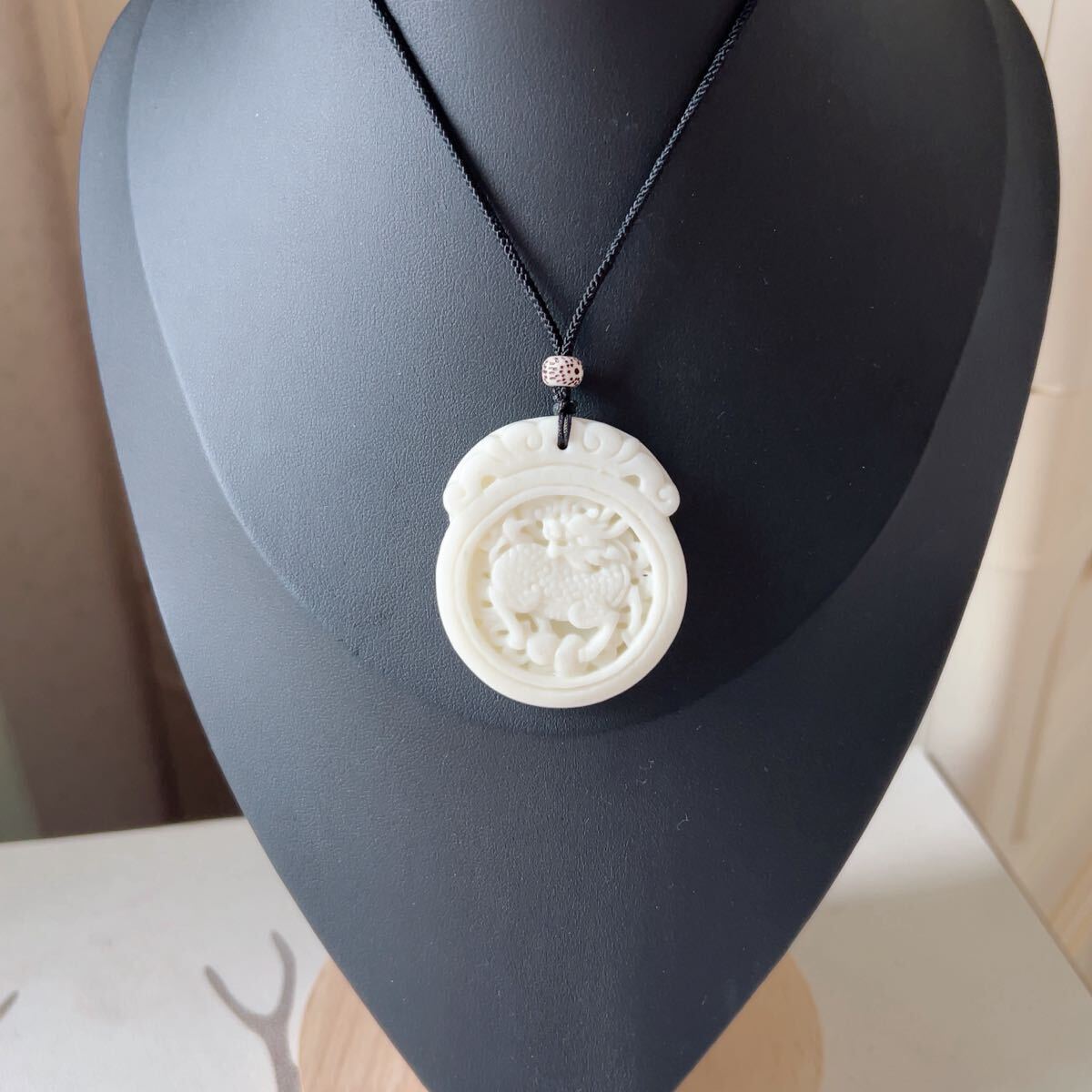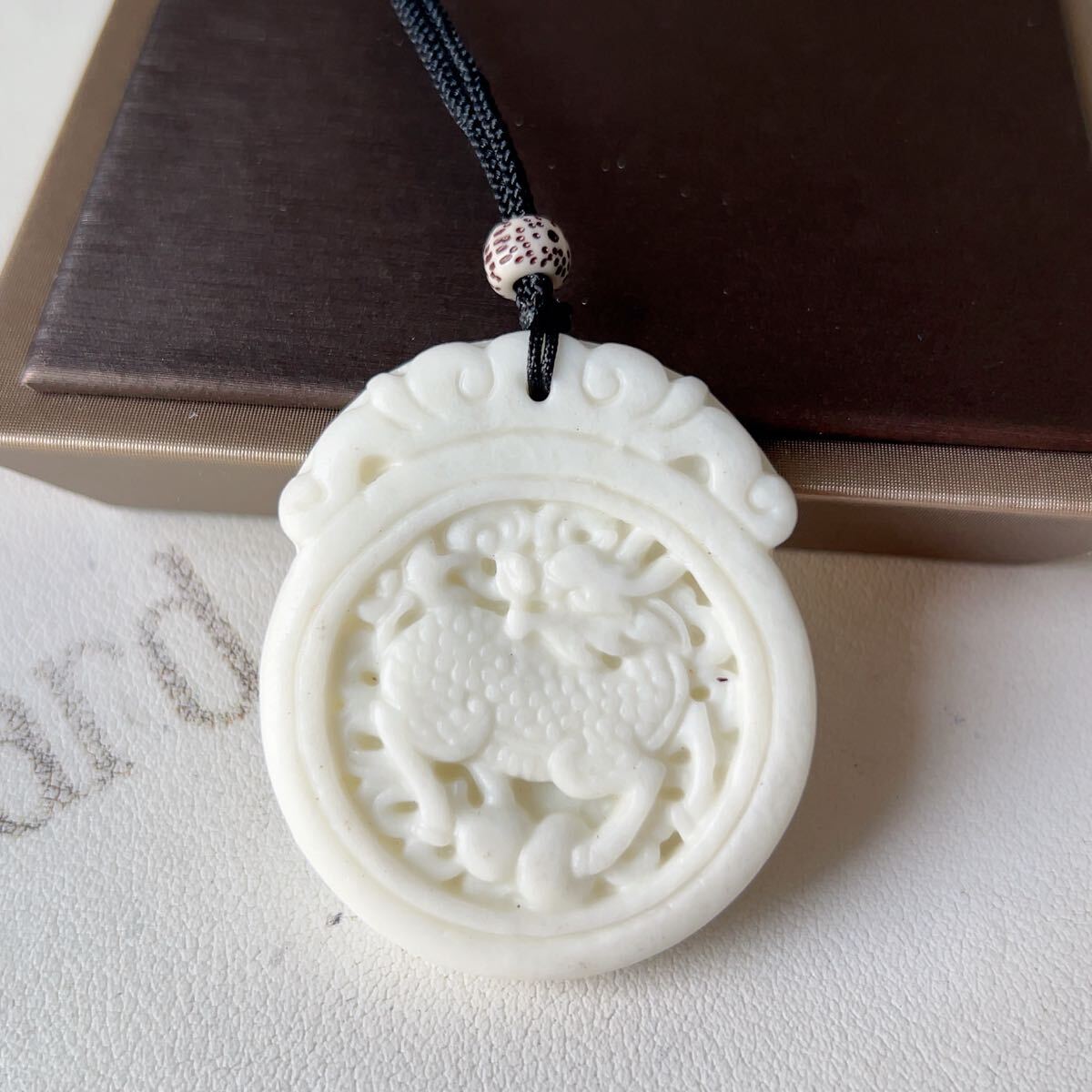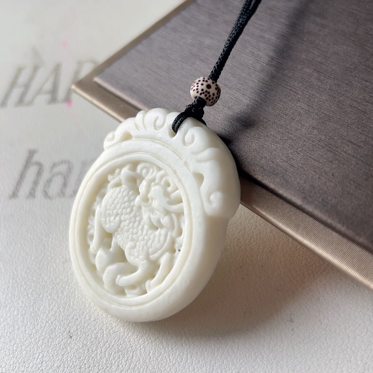◇藍田玉◇翡翠・ヒスイ◇ネックレス◇ペンダント◇麒麟形◇彫刻◇天然石◇パワーストーン◇プレゼントにも040P935