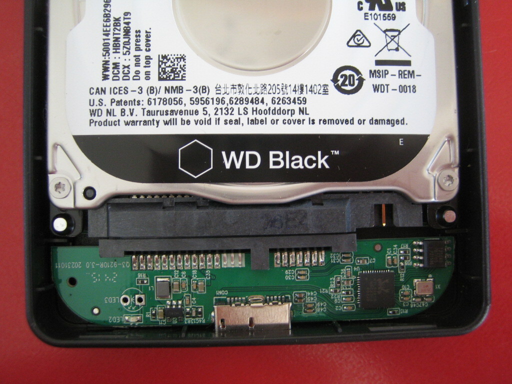 2.5インチのWESTERN DIGITAL製ハードディスク WD5000LPLX-08ZNTTO 500GB + USB 3.0 外付け用ケース + USB 3.0 Micro-Bポート用コードです。