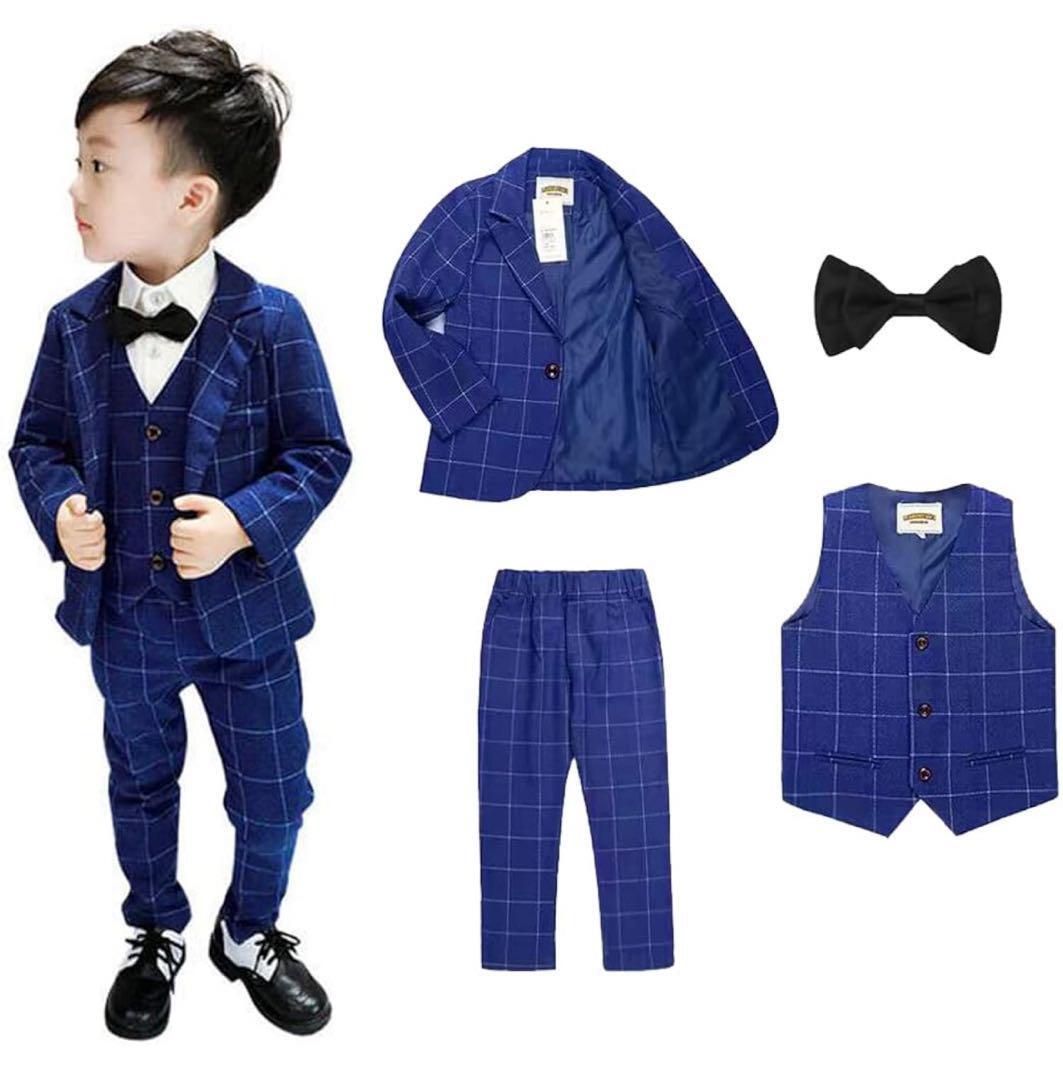 ベスト+ズボン+ジャケット+蝶ネクタイ、モデル着用のシャツは含まれません。お子様のためのお洒落なスーツセット。蝶ネクタイ(ランダムで発送、予告なく色や仕様変更する場合がごさいます)