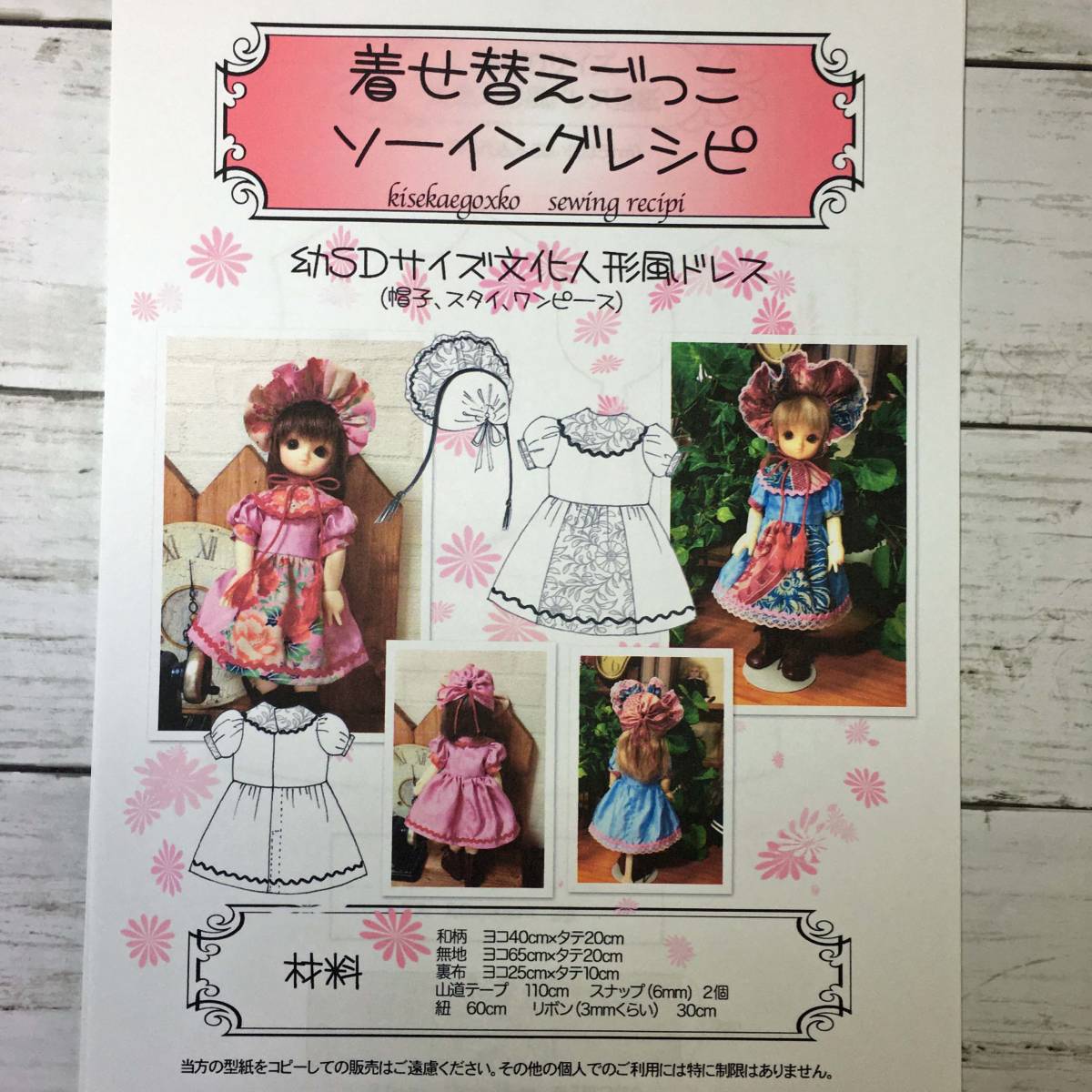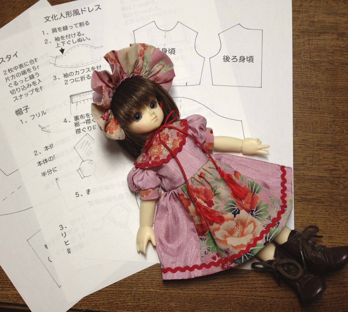 幼SDサイズ<文化人形風ドレス>型紙と作り方 ソーイングレシピ 難易度★★★