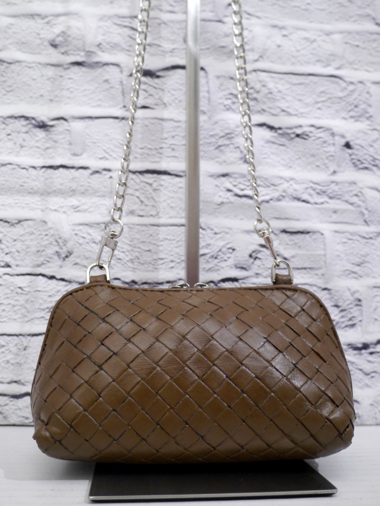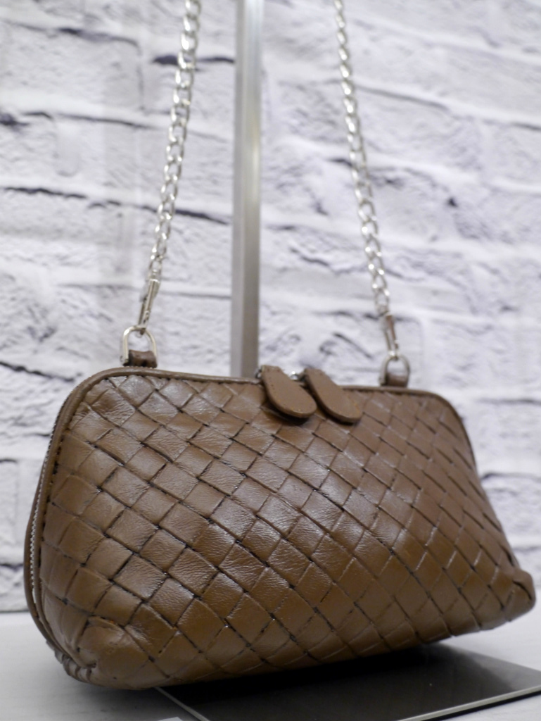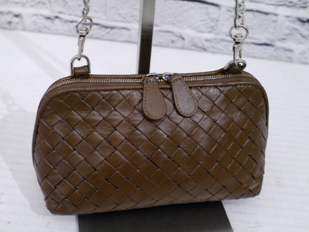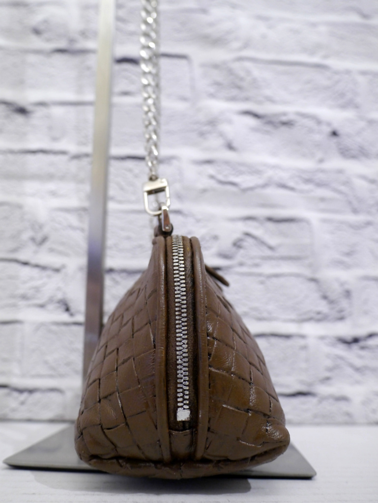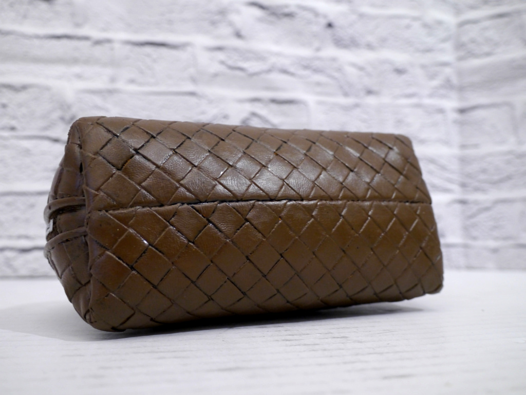 ◆ BOTTEGA VENETA ボッテガヴェネタ イントレチャート クロスボディ レザー ショルダー ミニ バッグ ポーチ ポシェット 茶 ◆ 希少モデル