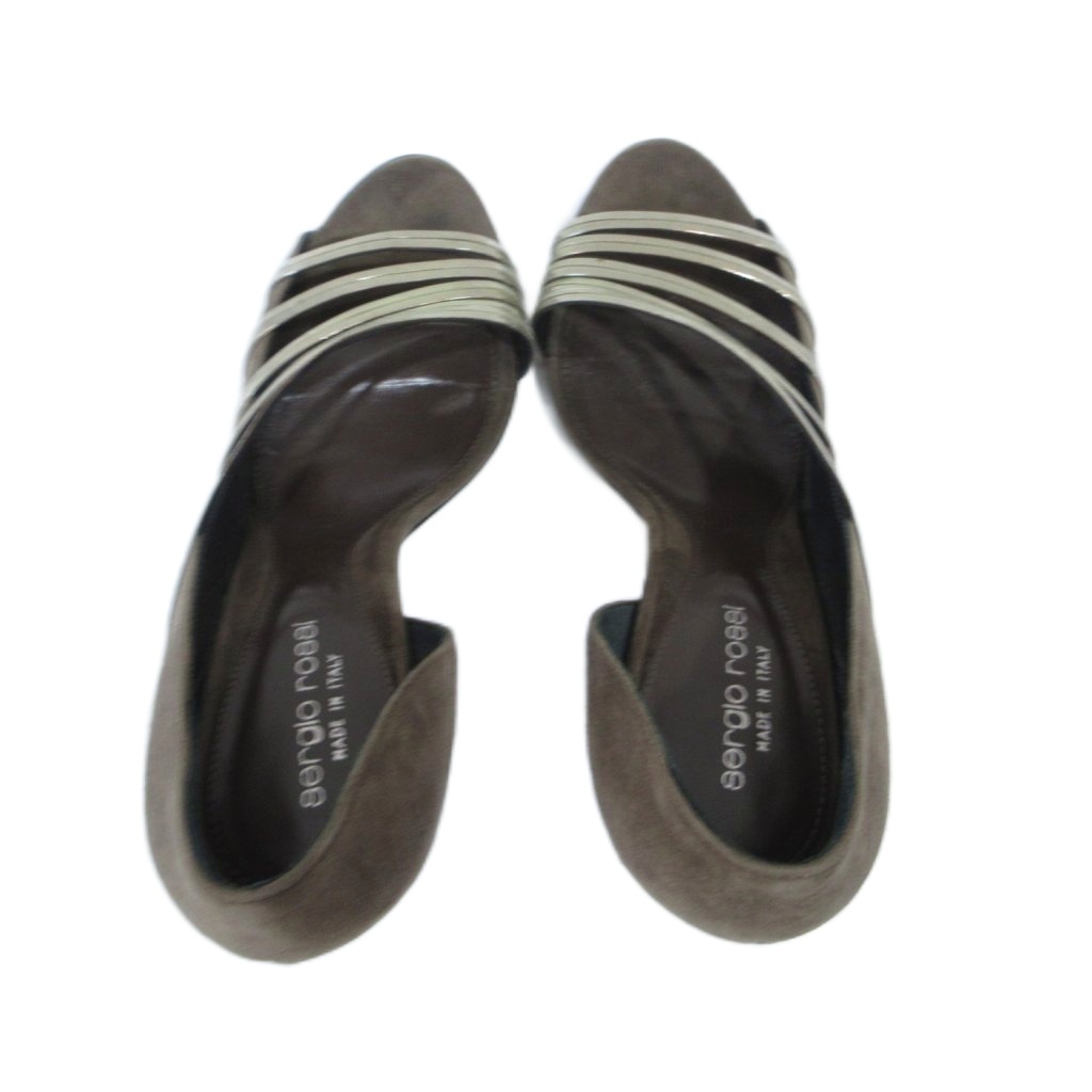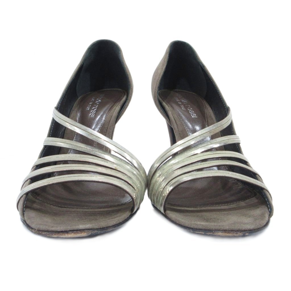 セルジオロッシ Sergio rossi パンプス ヒール オープントゥ ハイヒール スエード レザー 茶 ブラウン系 36.5 約23.5cm ■YHS2 レディース