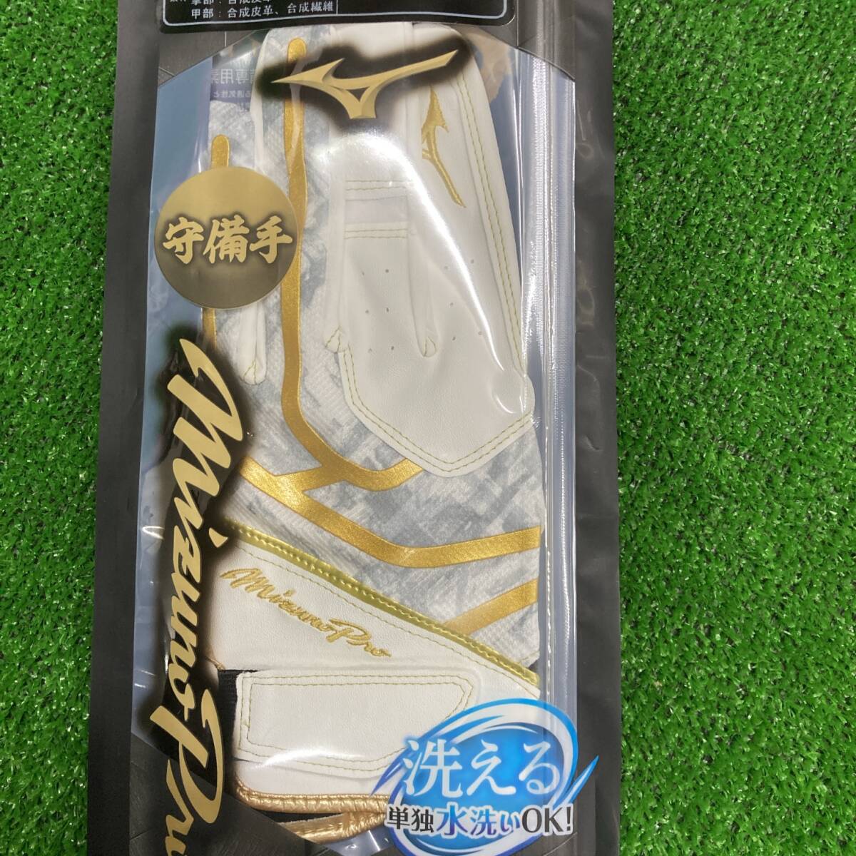 511 ミズノプロ 守備用手袋 ホワイト×ゴールド S寸 左手用 1EJED31001 新品