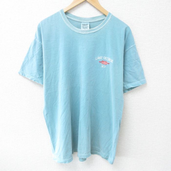 【商品名】 XL★古着 半袖 Tシャツ メンズ LAKE GEORGE コットン クルーネック 青緑