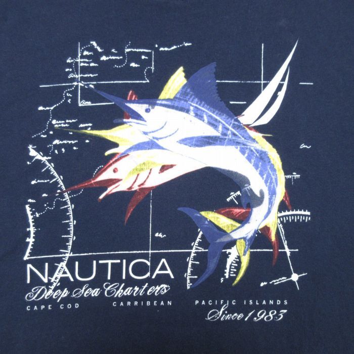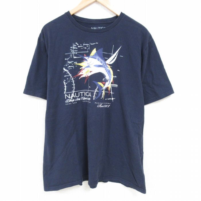 【商品名】 XL★古着 ノーティカ NAUTICA 半袖 ブランド Tシャツ メンズ カジキ 大きいサイズ コットン クルーネック 紺