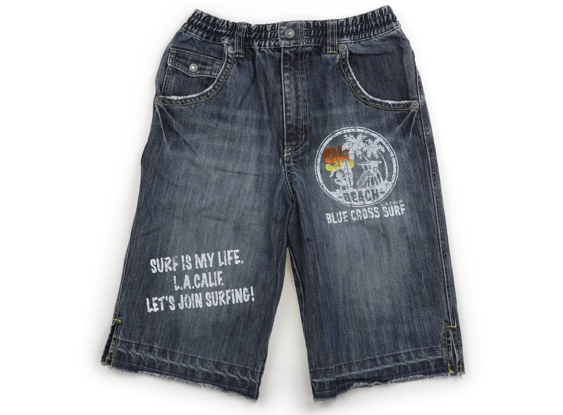 実際のサイズ表記はM。ウエストは総ゴムで前ファスナー開き。ダメージ加工。色落ちありますがまだお使いいただけそうです。裾に折り目の跡あり。