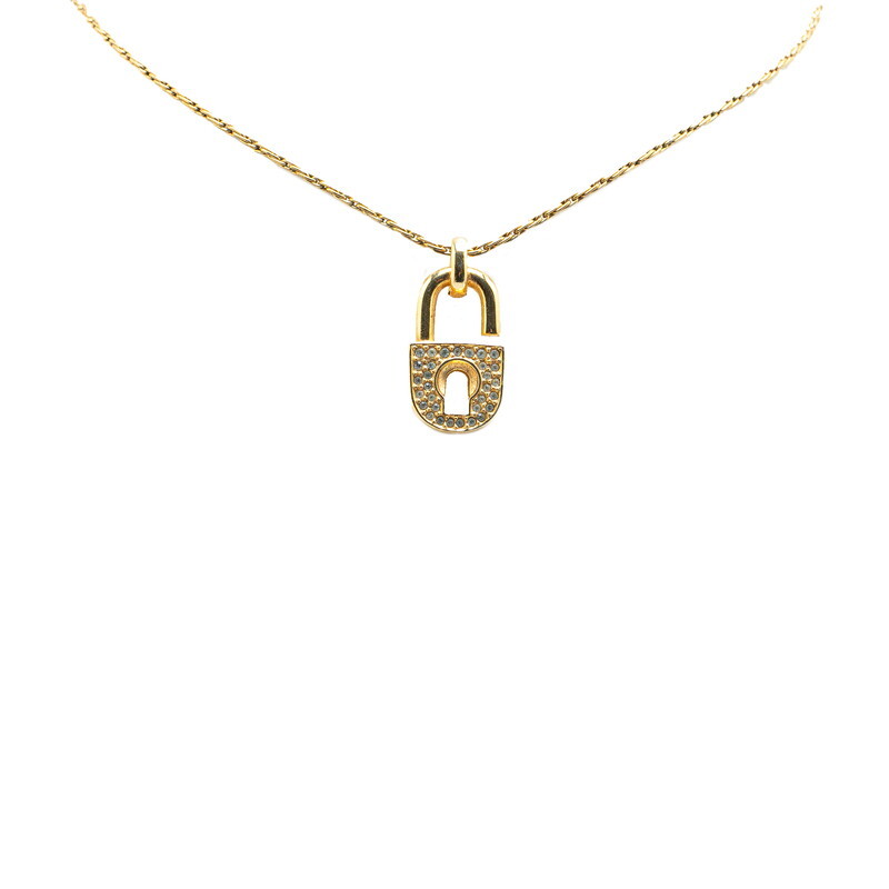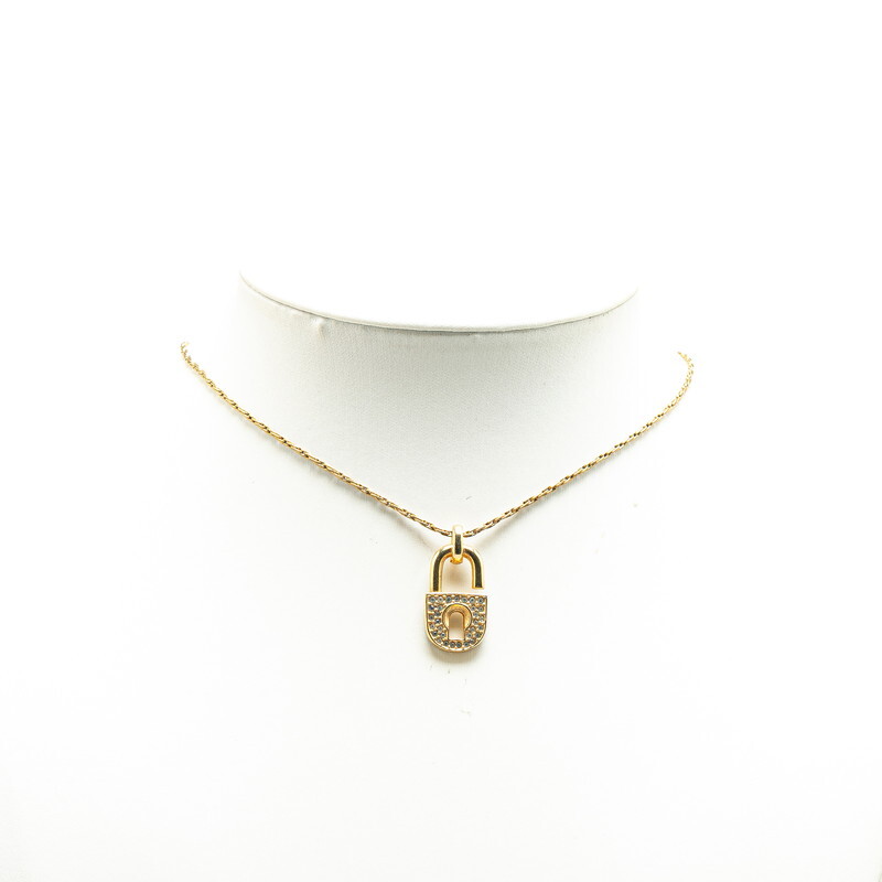 ディオール CD ロゴ 南京錠 モチーフ ネックレス ゴールド メッキ ラインストーン レディース Dior 【中古】