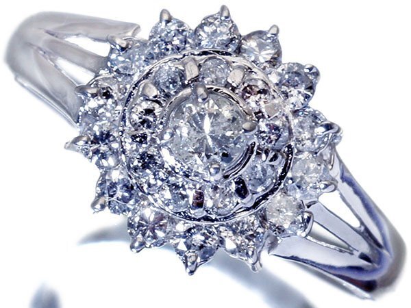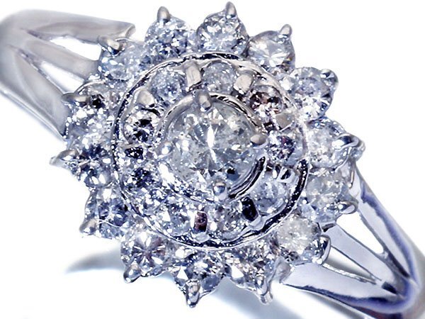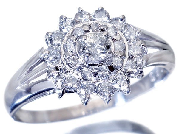 素敵なフラワーデザイン輝く良質天然ダイヤモンド総計0.56ctを素敵に宝飾した、高級Pt900リングを1円から特別大放出致します!