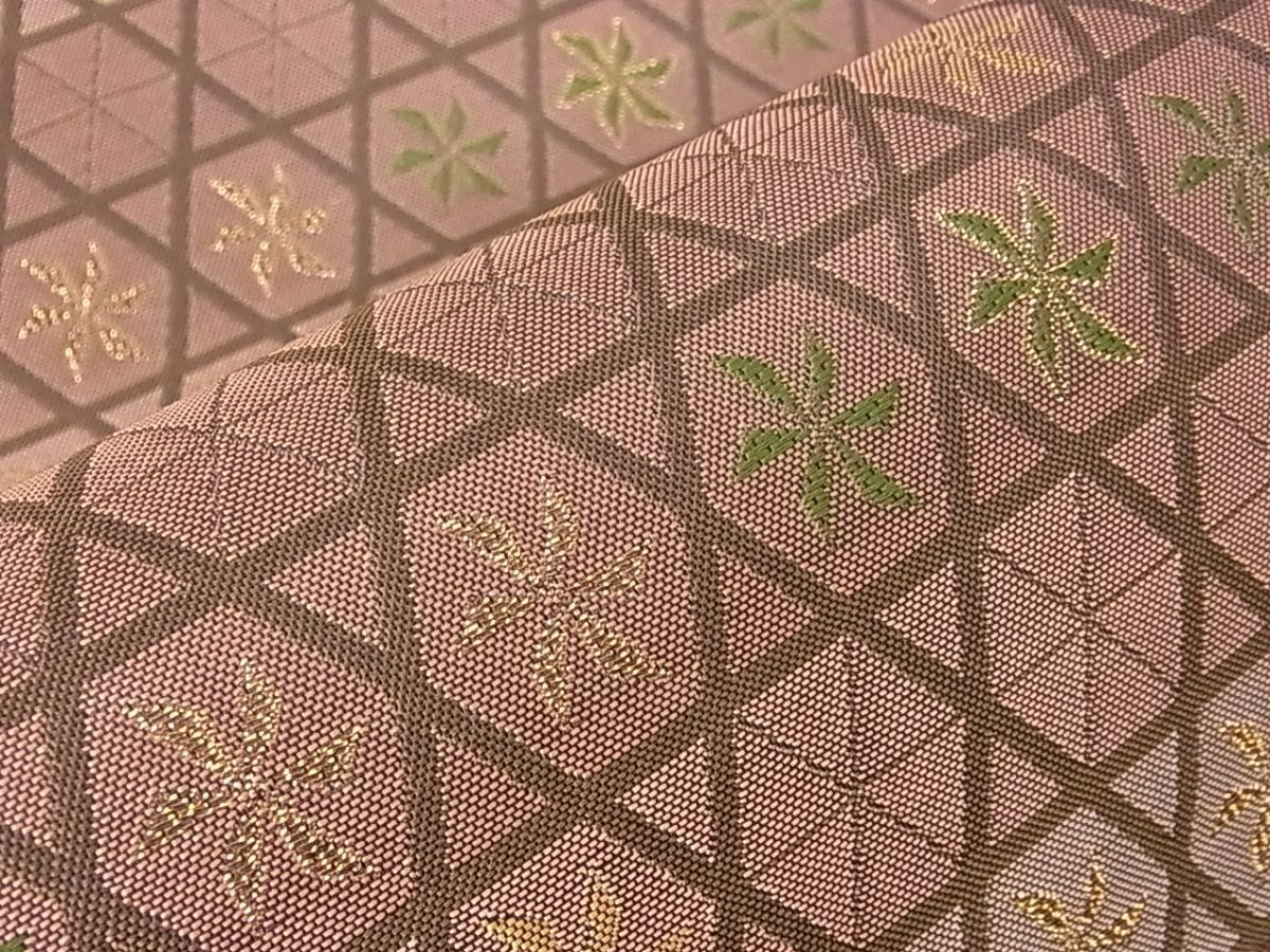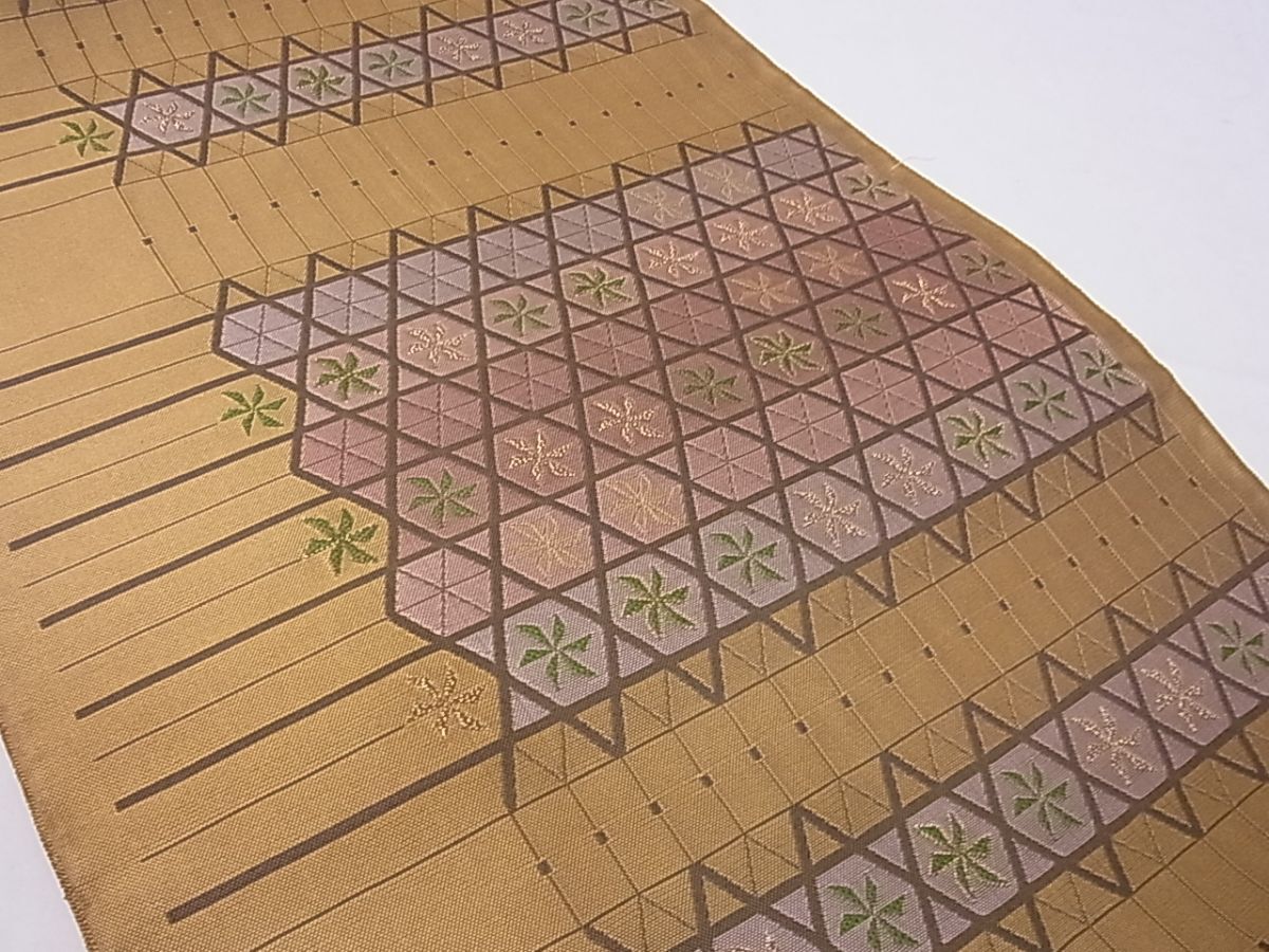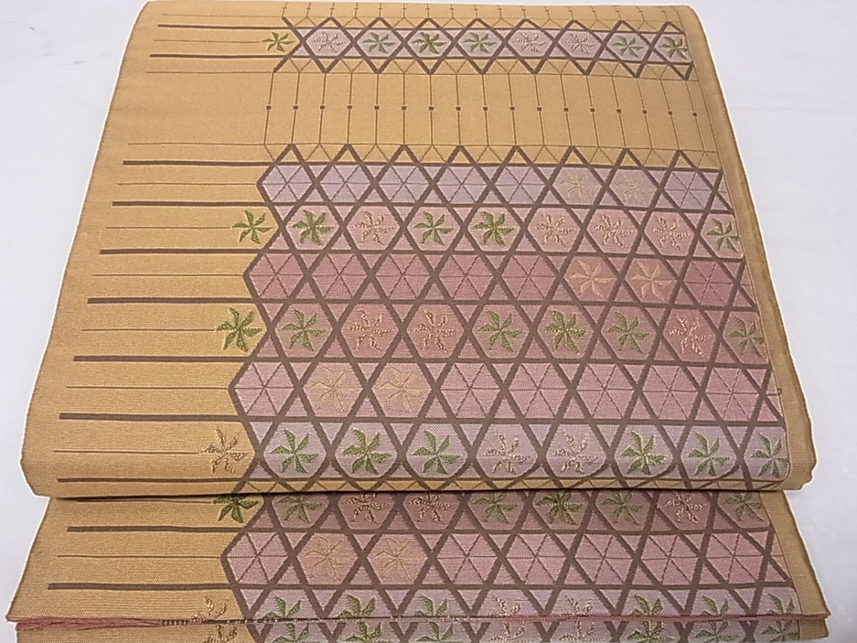 eふれんず◆両面京袋帯 筑紫袋 遊 花菱文 間道 金糸 正絹 美品◆bm1494