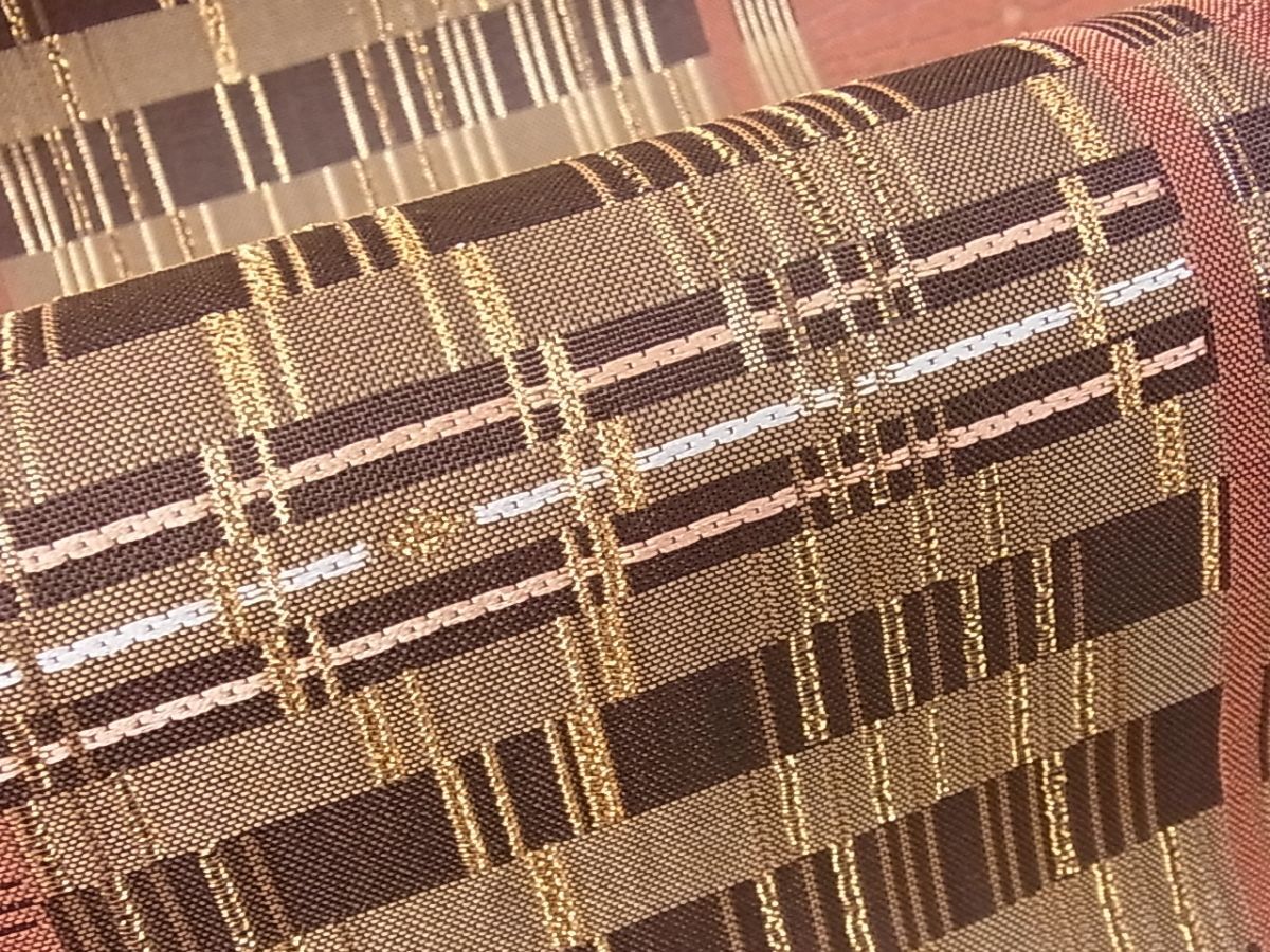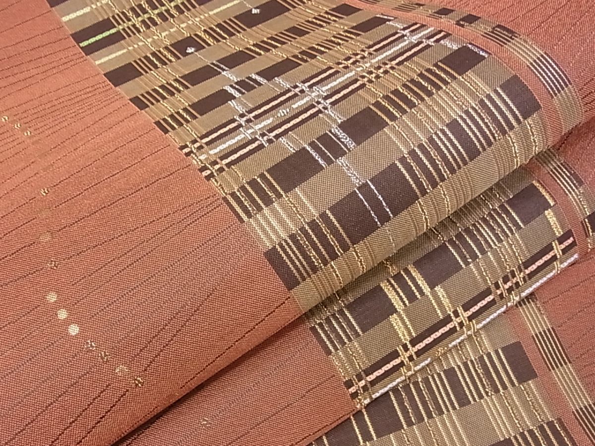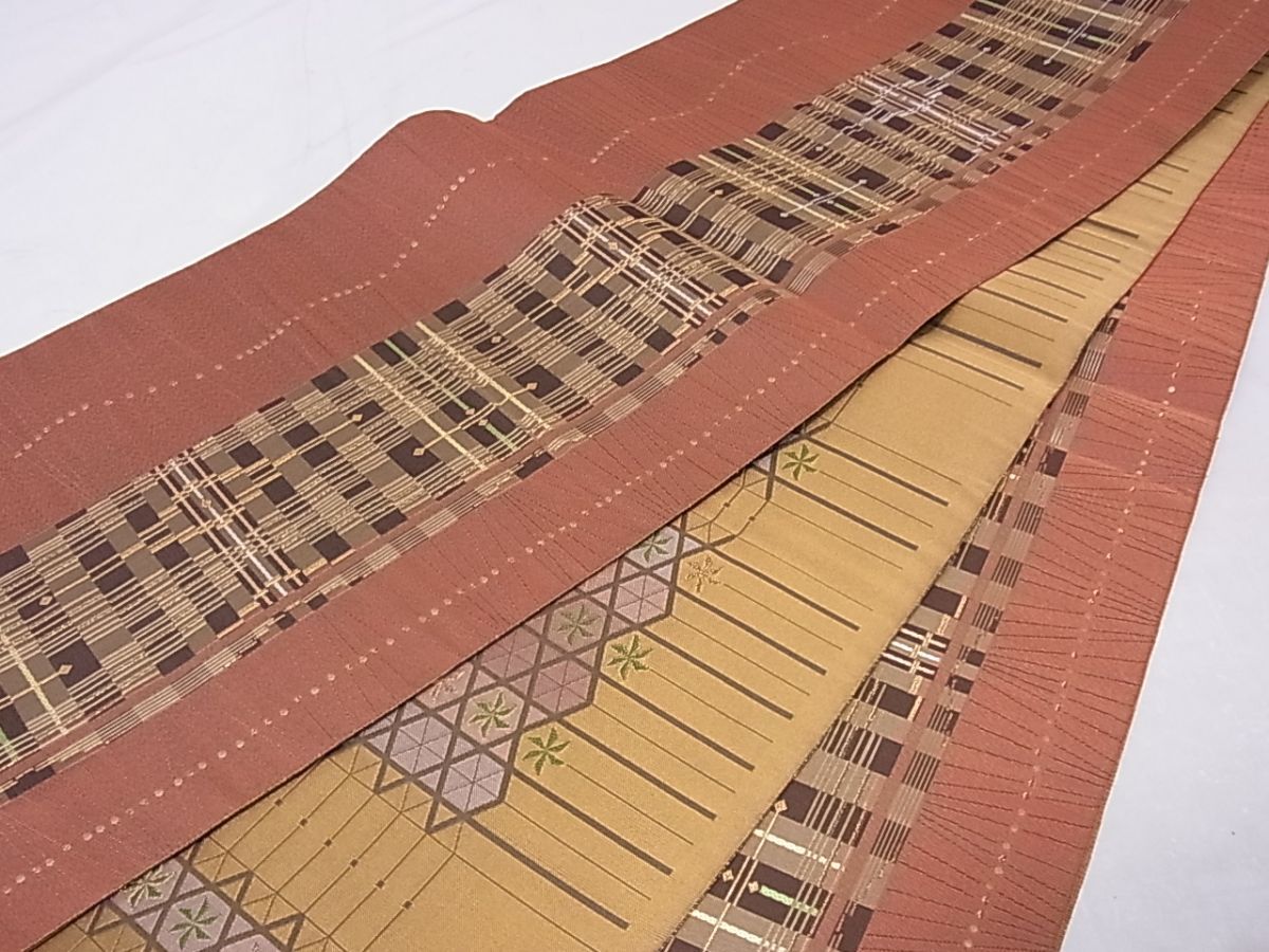 eふれんず◆両面京袋帯 筑紫袋 遊 花菱文 間道 金糸 正絹 美品◆bm1494